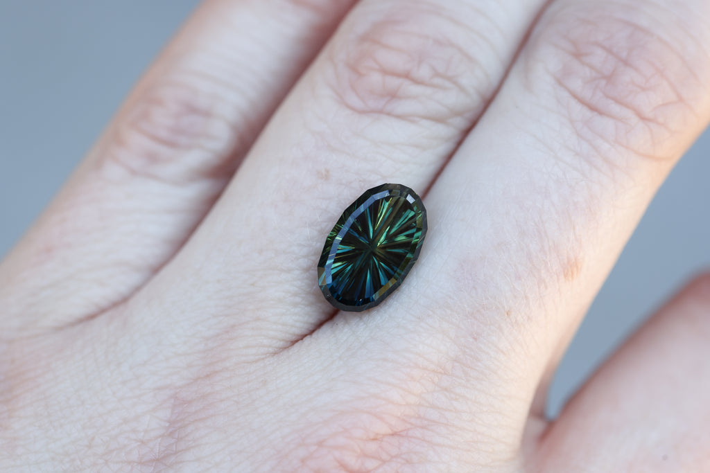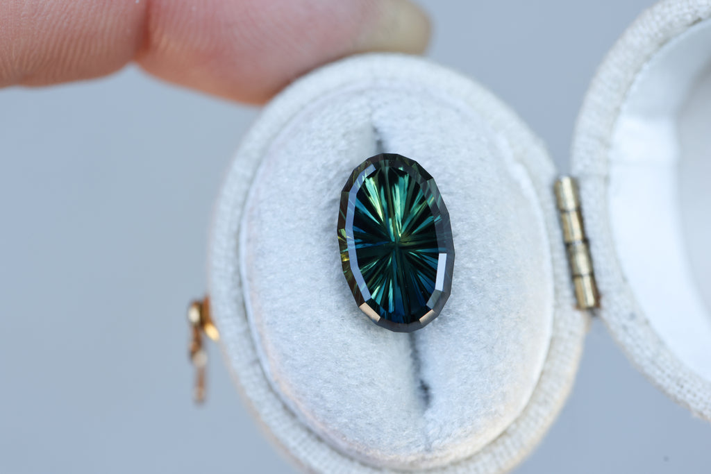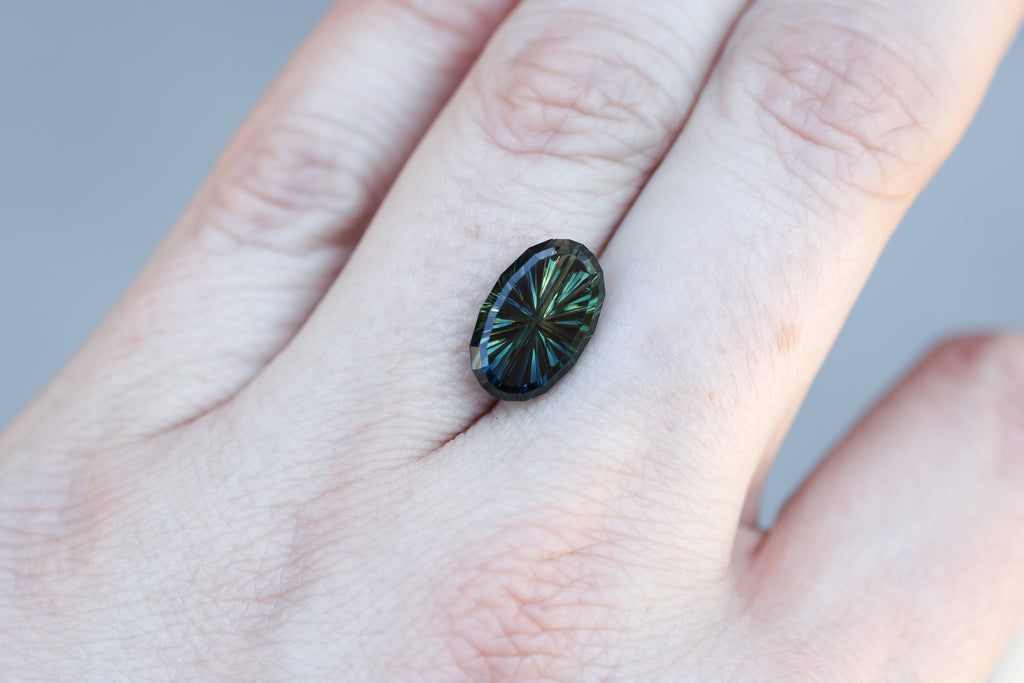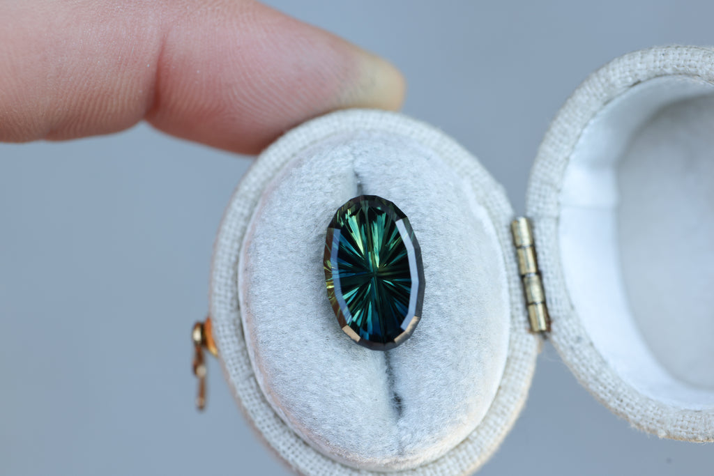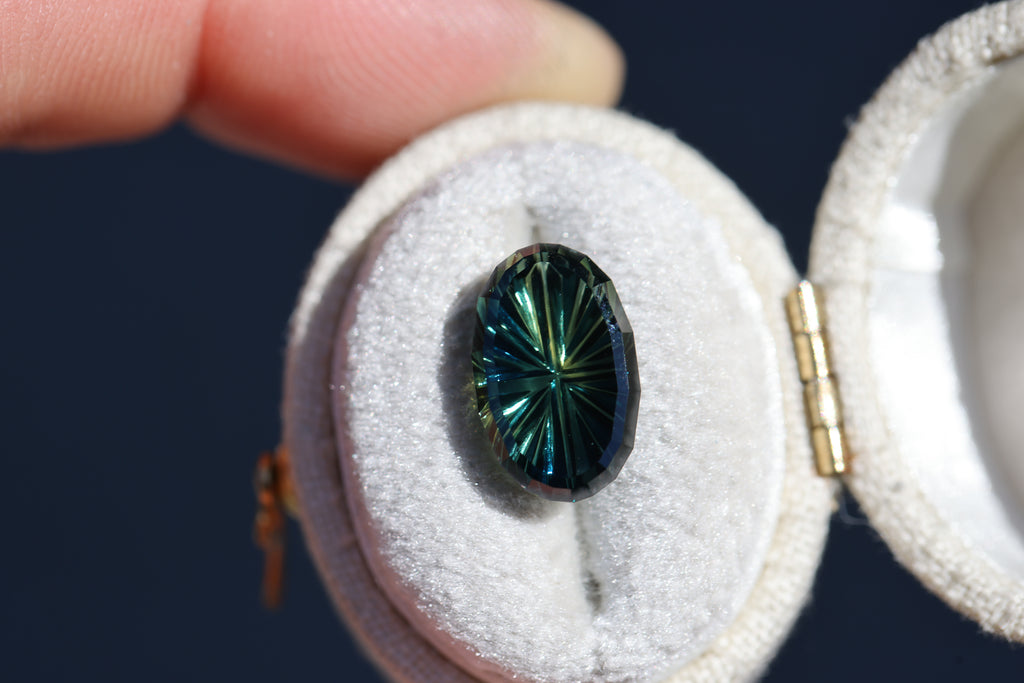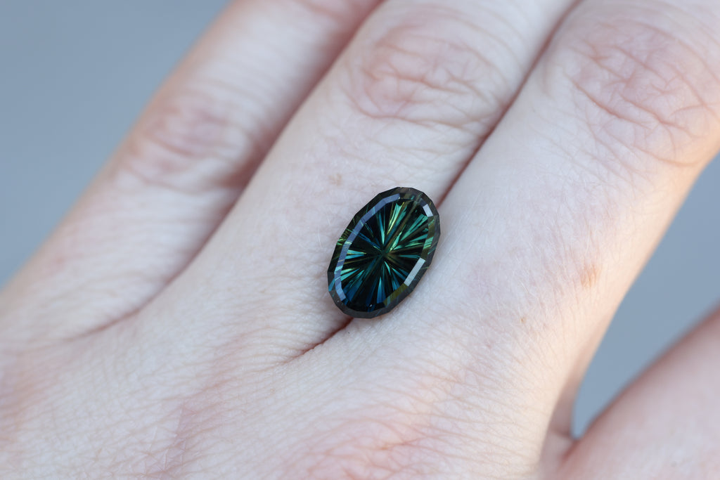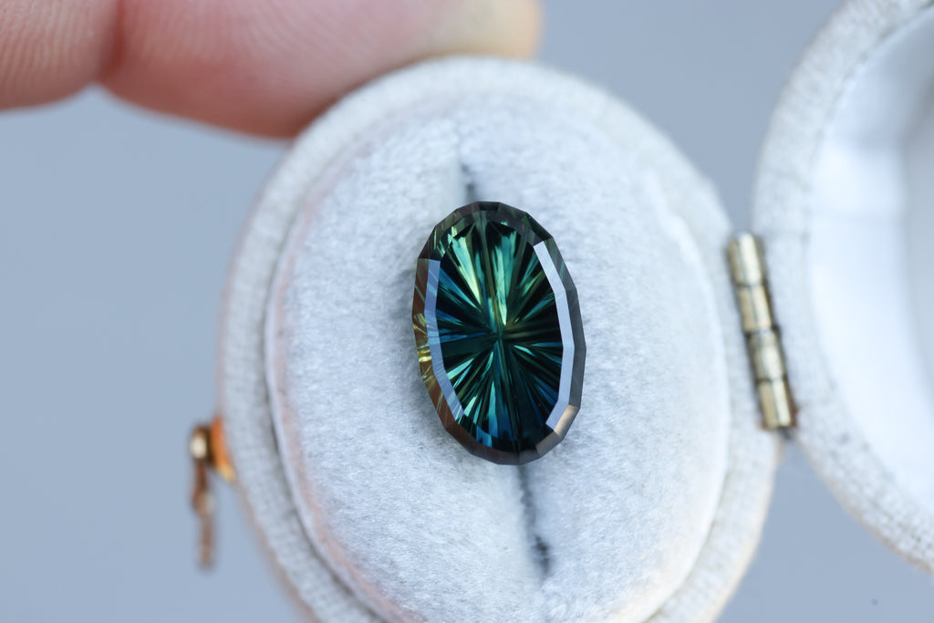 5.57ct oval blue green sapphire, Starbrite cut by John Dyer