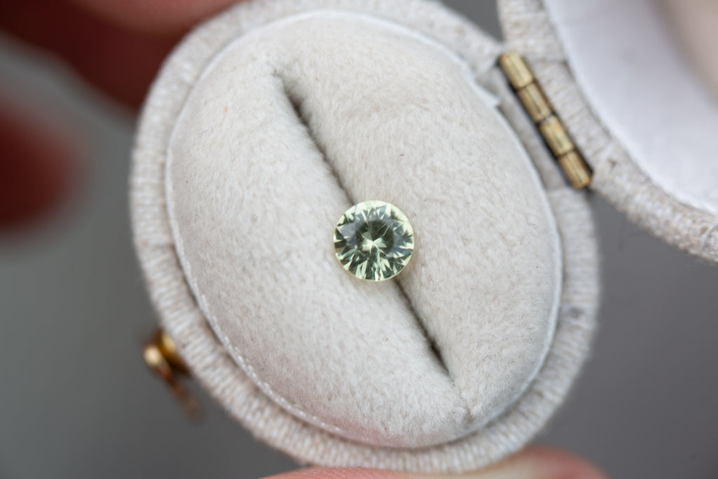 The prettiest light yellow green sapphire with lots of sparkle - it such a beautiful color!