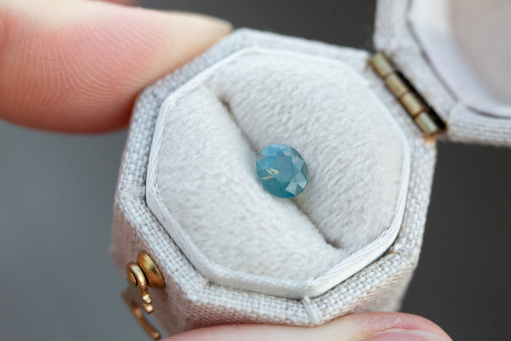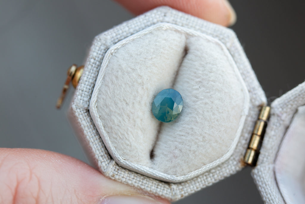Such a pretty opalescent blue green sapphire!