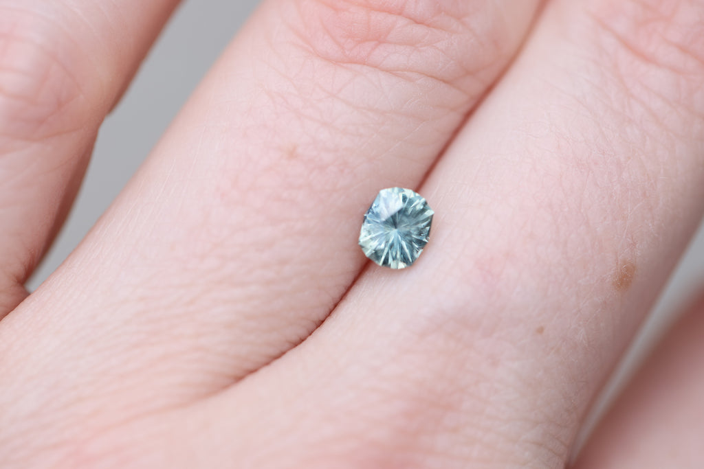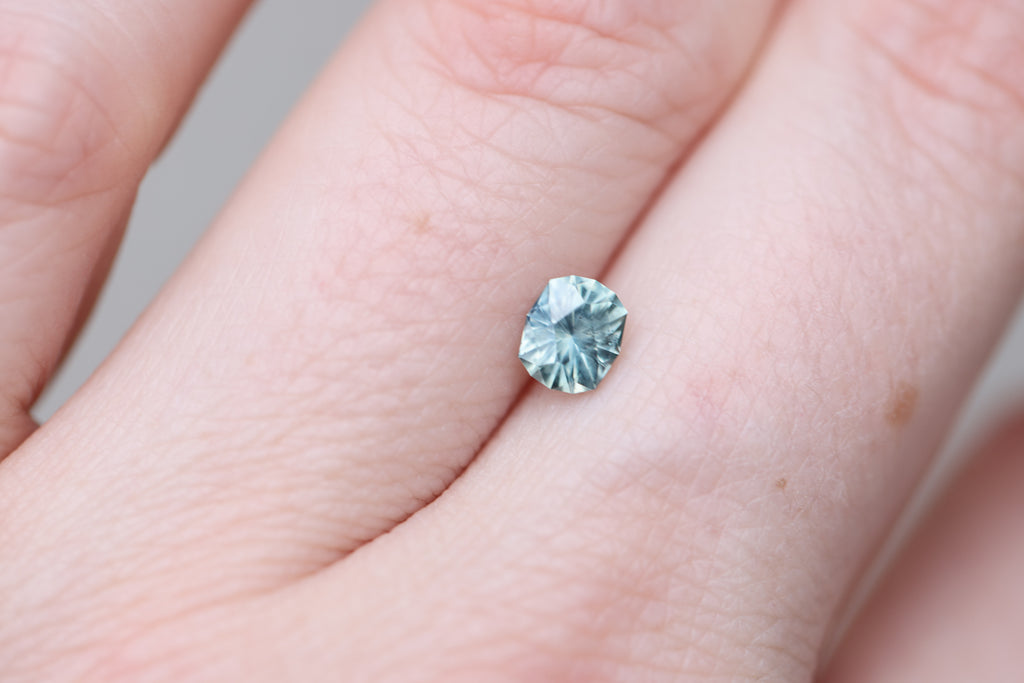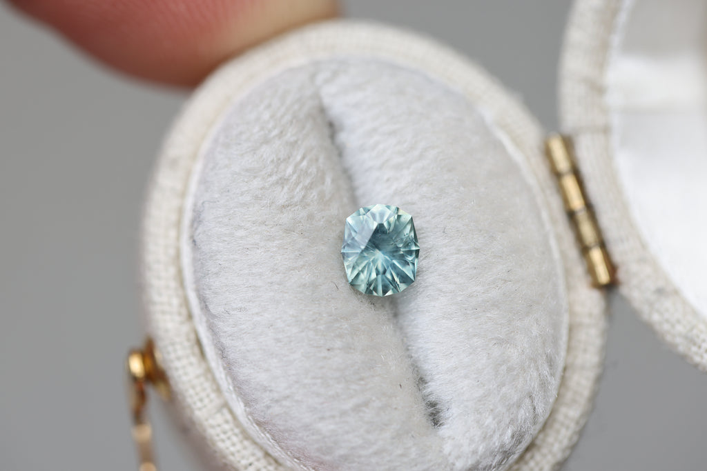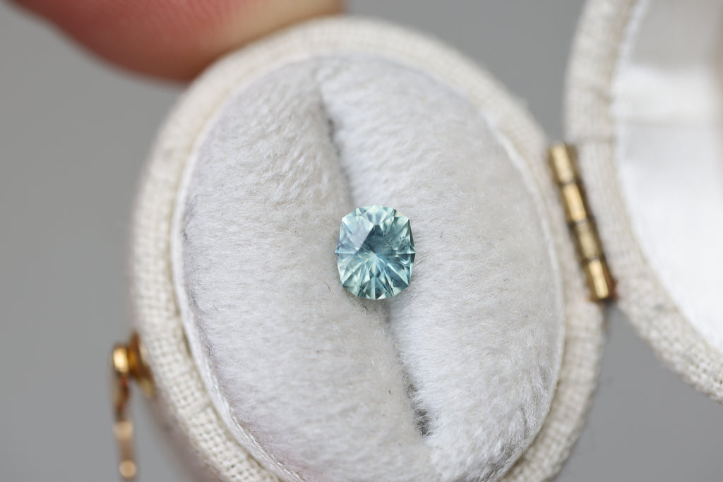 This absolutely incredible oval sapphire is a blue green mint sapphire with such stunning coloring and gorgeous faceting!