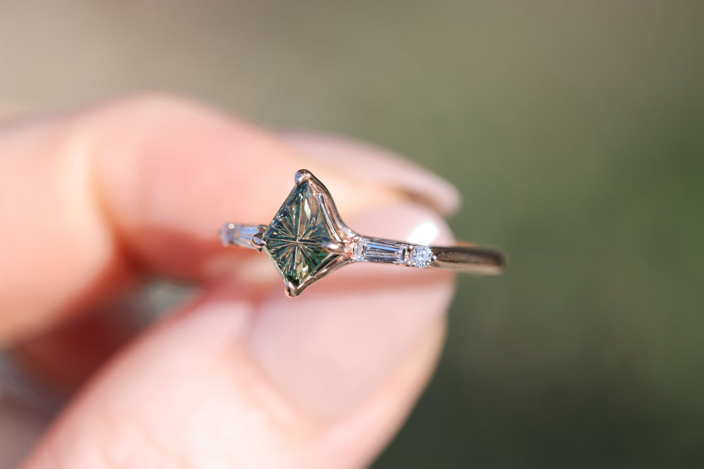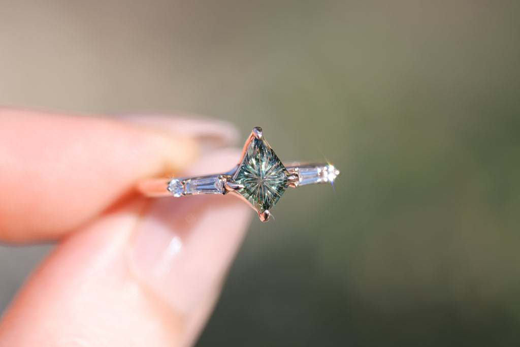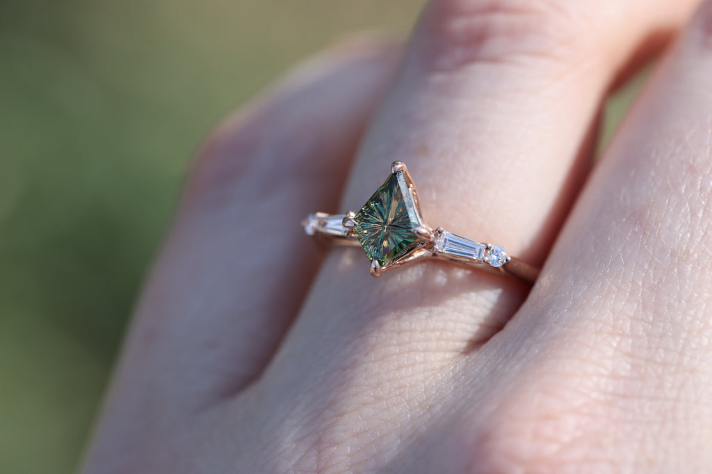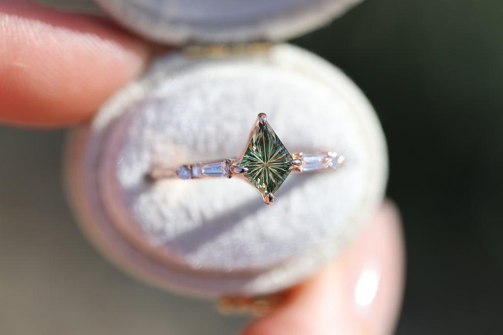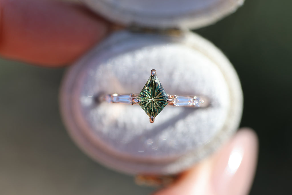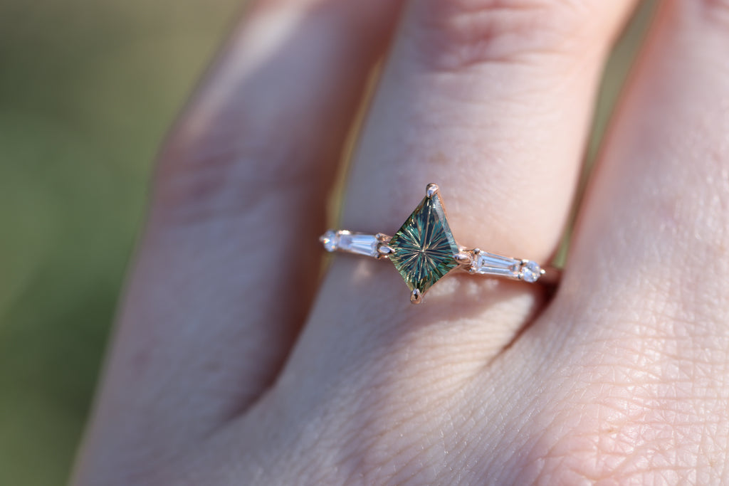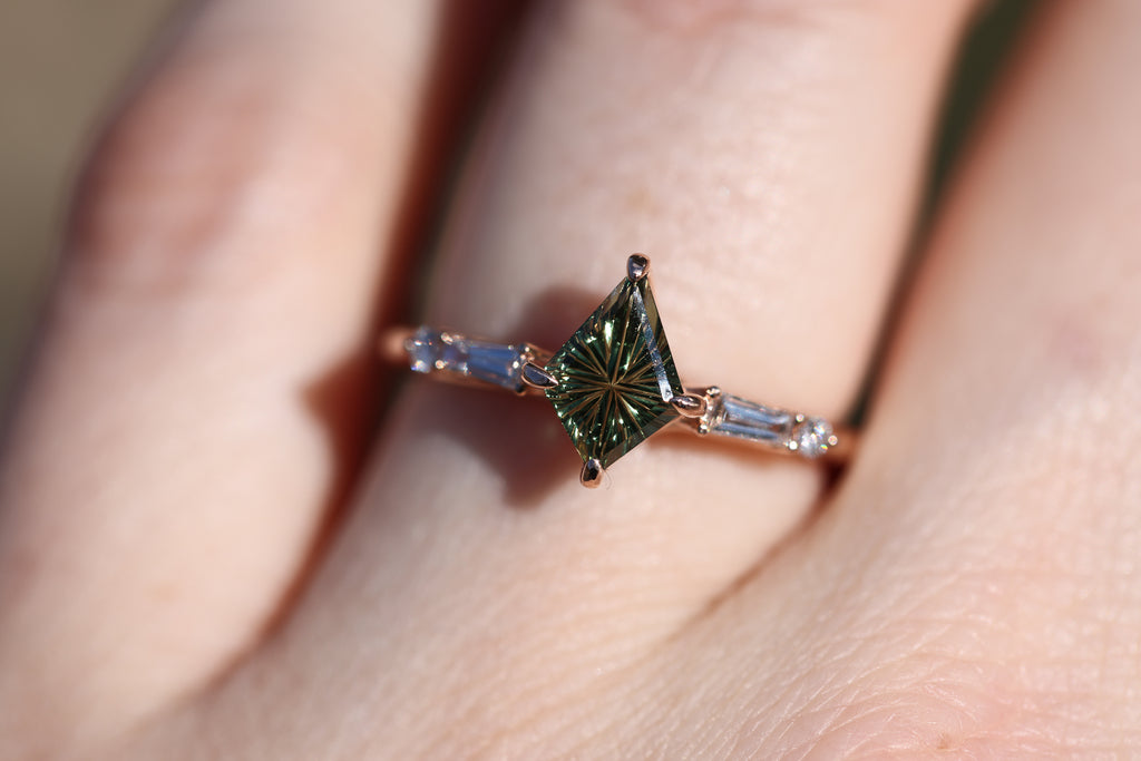 - .81ct 8.6x6.1mm green Australian kite cut Starbrite sapphire heated