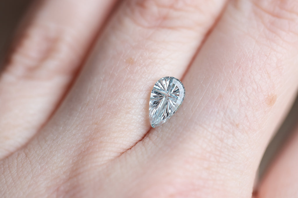 1.25ct pear light blue sapphire, Starbrite cut by John Dyer