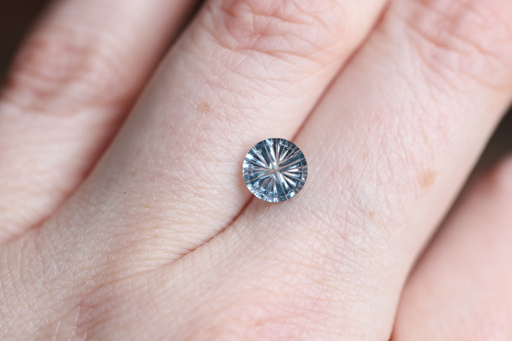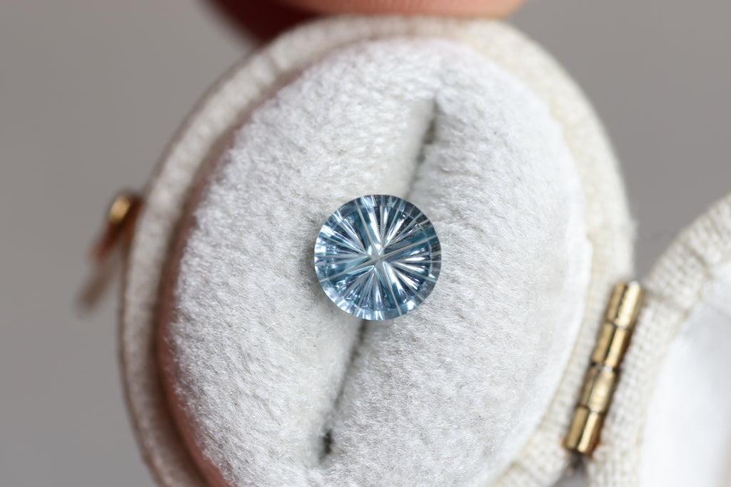 1.36ct round medium blue sapphire, Starbrite cut by John Dyer