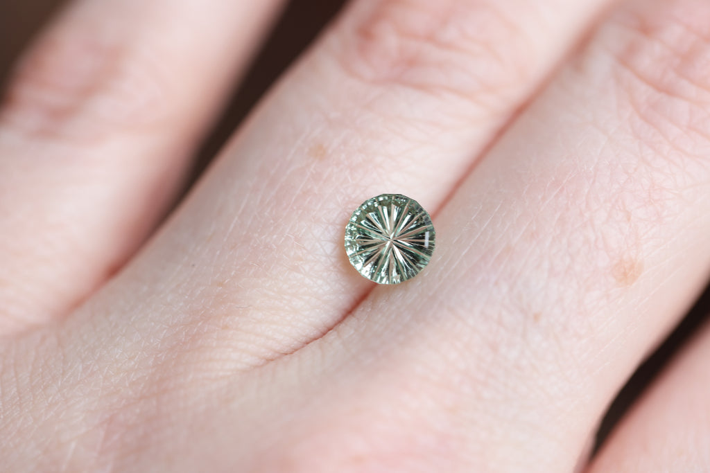 1.37ct round light green sapphire, Starbrite cut by John Dyer