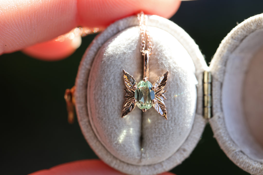 Ready to ship- Forest sprite with lab green sapphire/rose gold