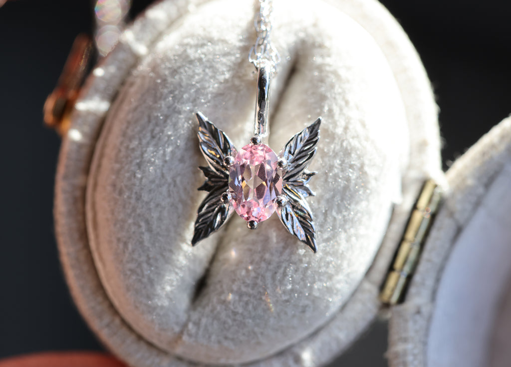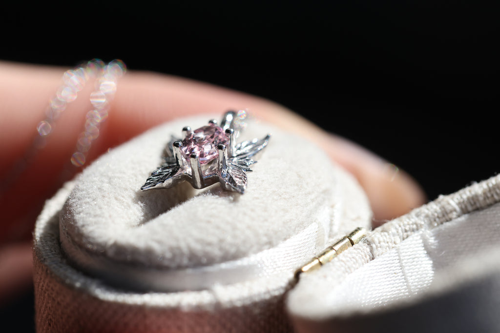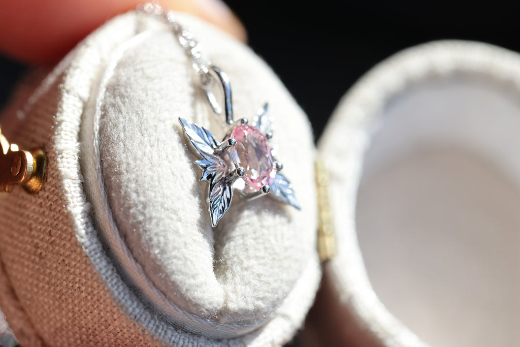 Ready to ship- Forest sprite with lab pink sapphire/14k white gold