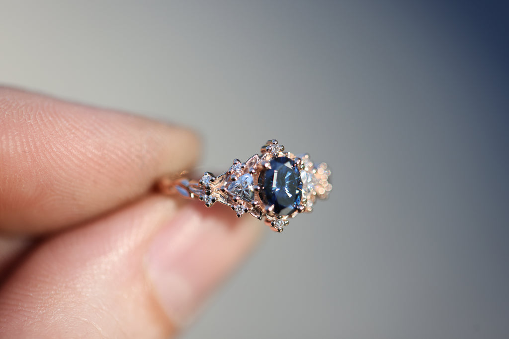 READY TO SHIP - Size 3.5, 14k Rose Gold Briar Rose Three Stone