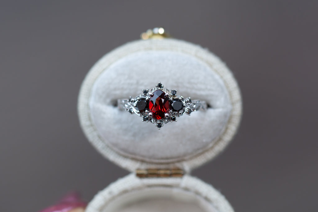 READY TO SHIP - SIZE 5, 14K White Gold Briar Rose Three Stone