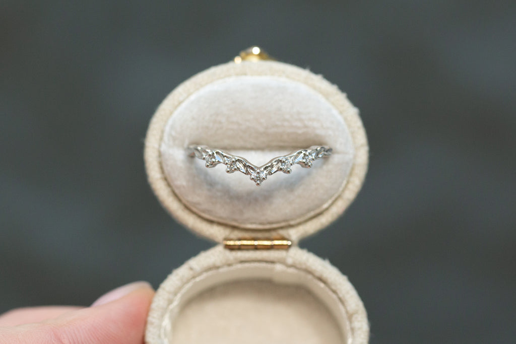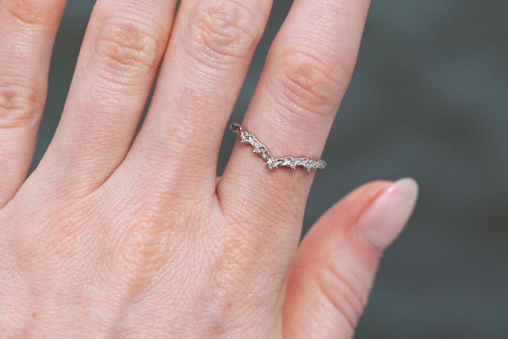 READY TO SHIP - Size 8.75, platinum Chevron Leafy Band with 1.5mm Accents
