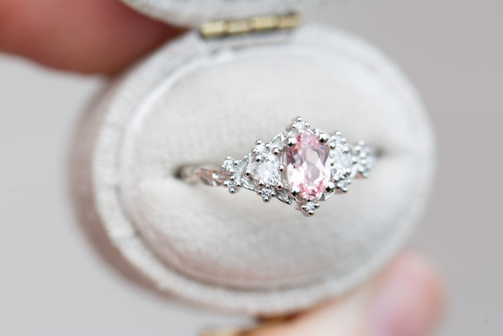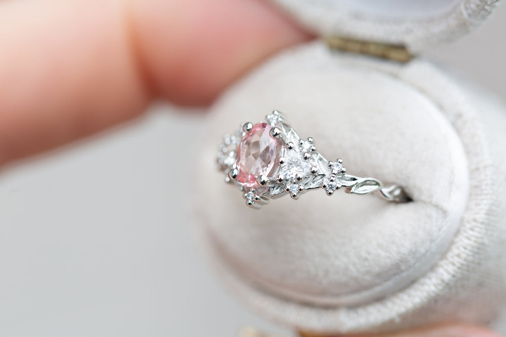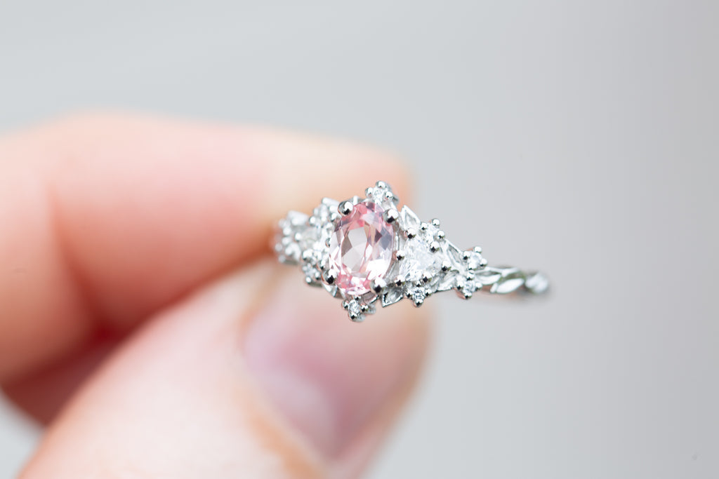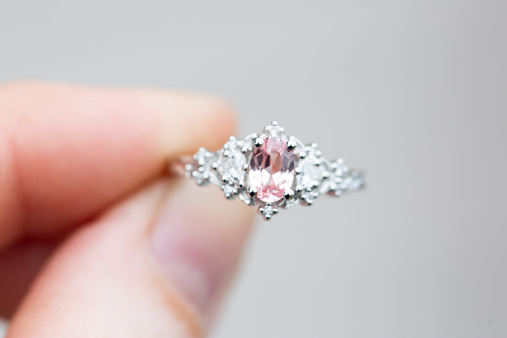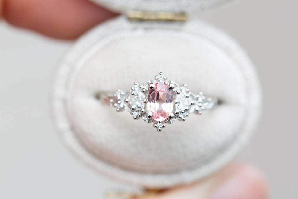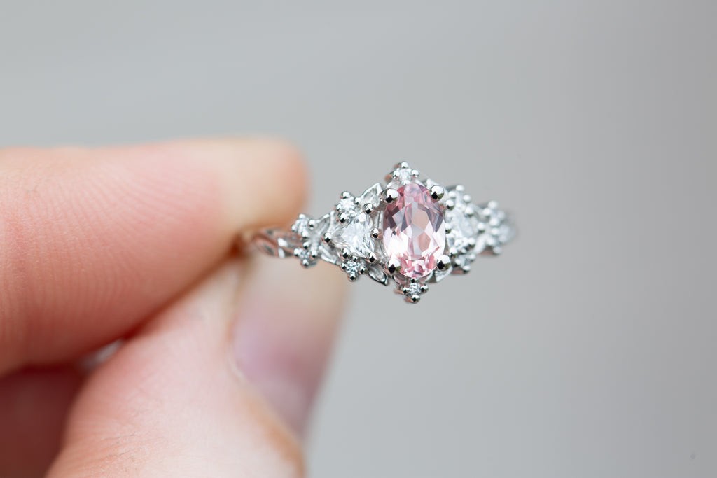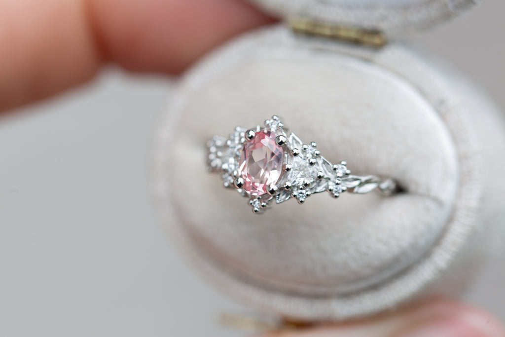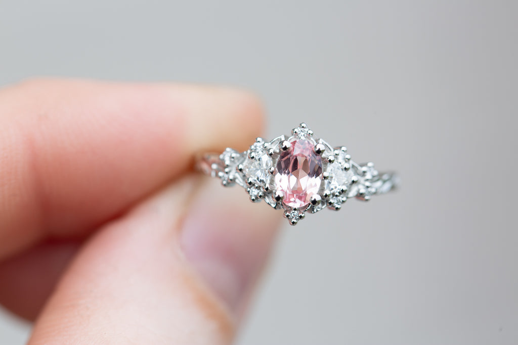 6x4mm oval lab peach sapphire center stone
