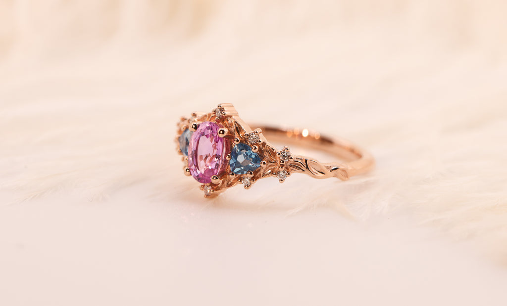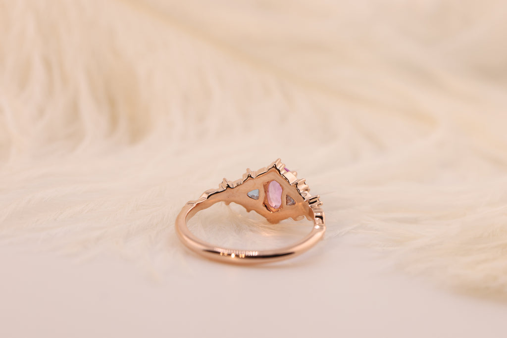 Ready to ship, Size 6 14k rose, Briar rose three stone