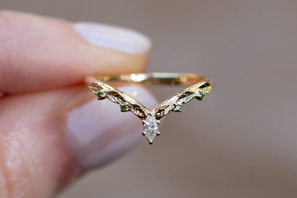 Ready to Ship - Size 6, 14k yellow gold Woodland Chevron Band