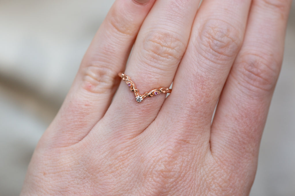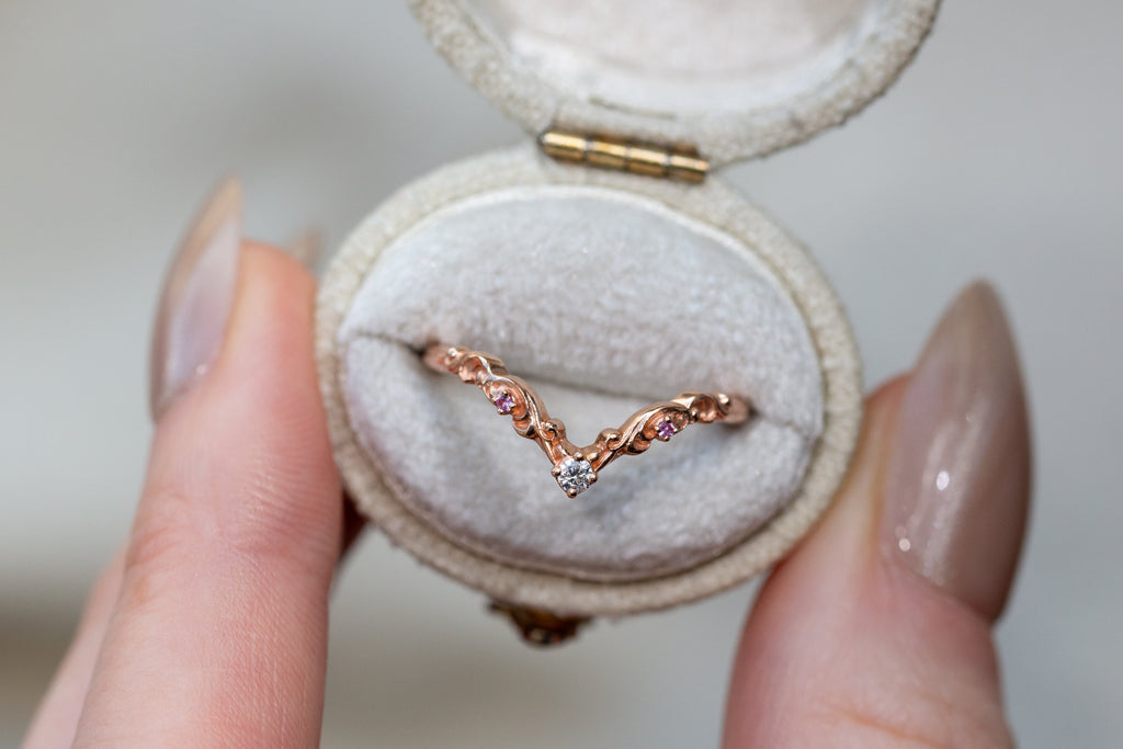 Ready to ship- Size 6.25, 14k rose gold Curved Filigree Wedding Band