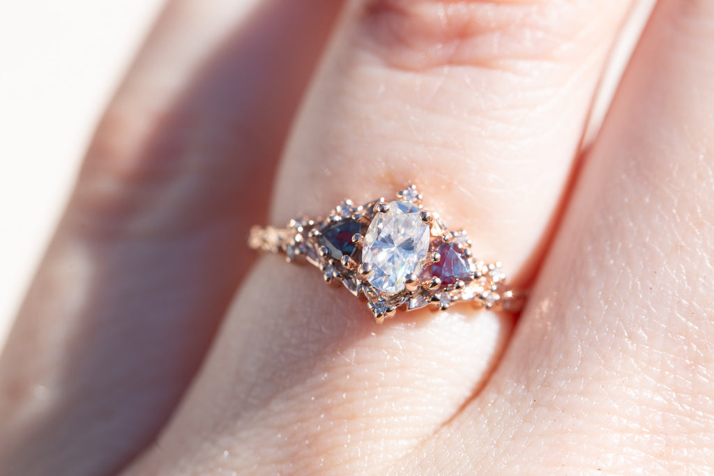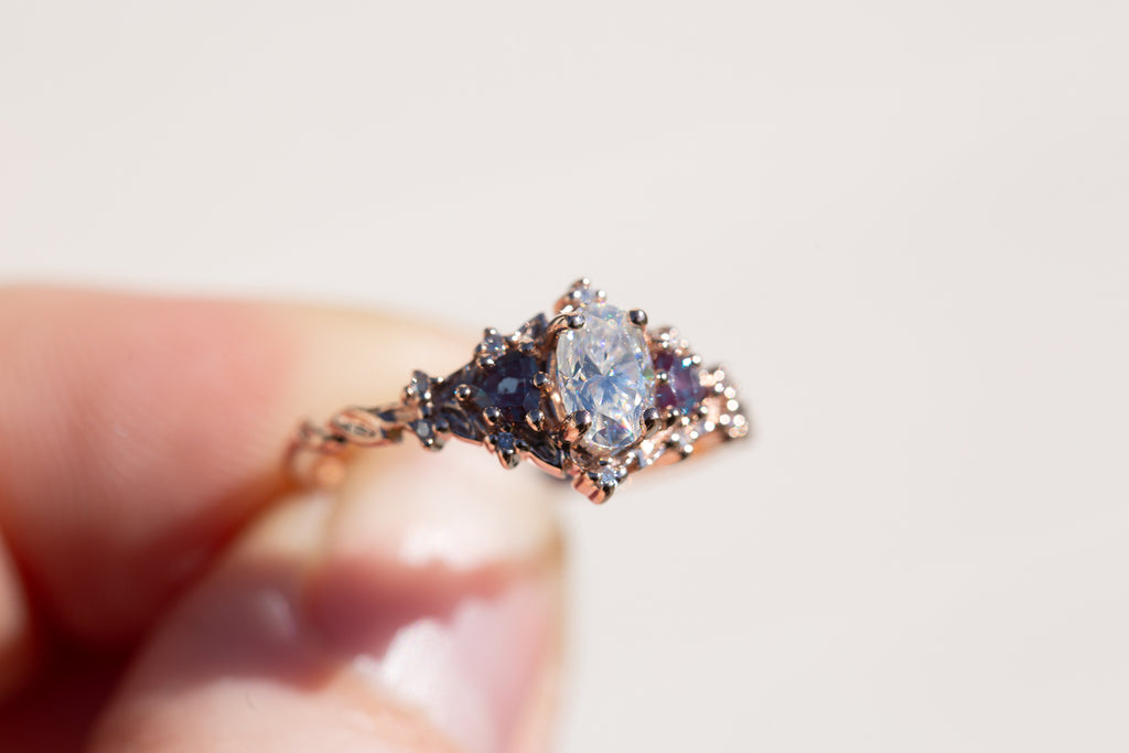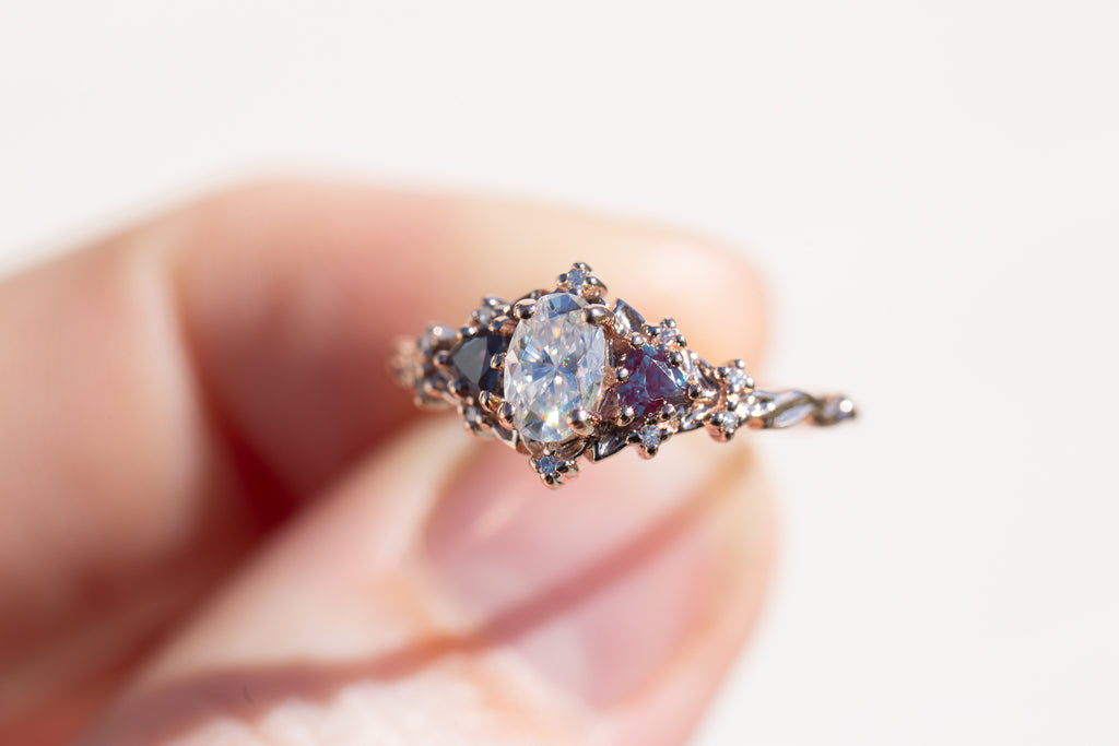 - 6x4mm oval moissanite center