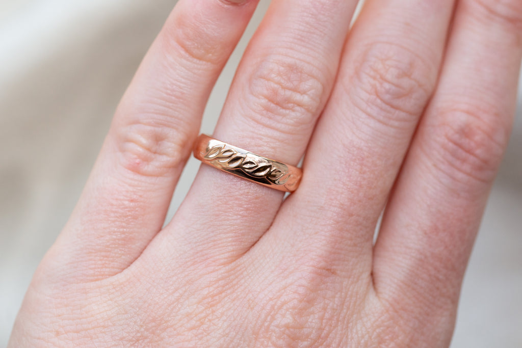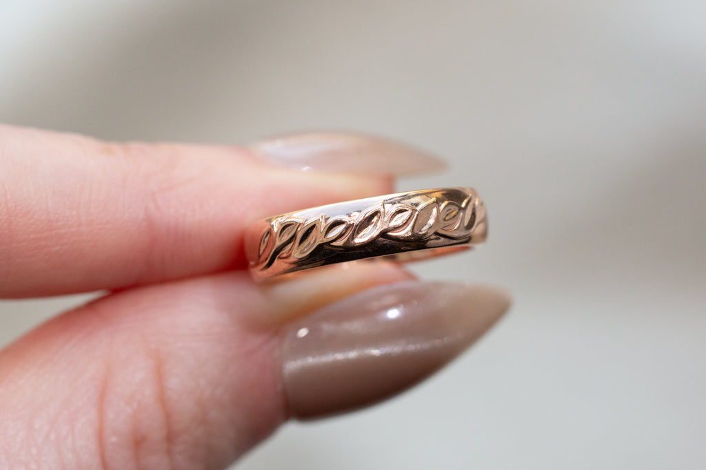 Ready to ship- Size 6.5, 14k rose gold Thick Leaf Wedding Band