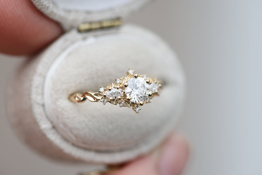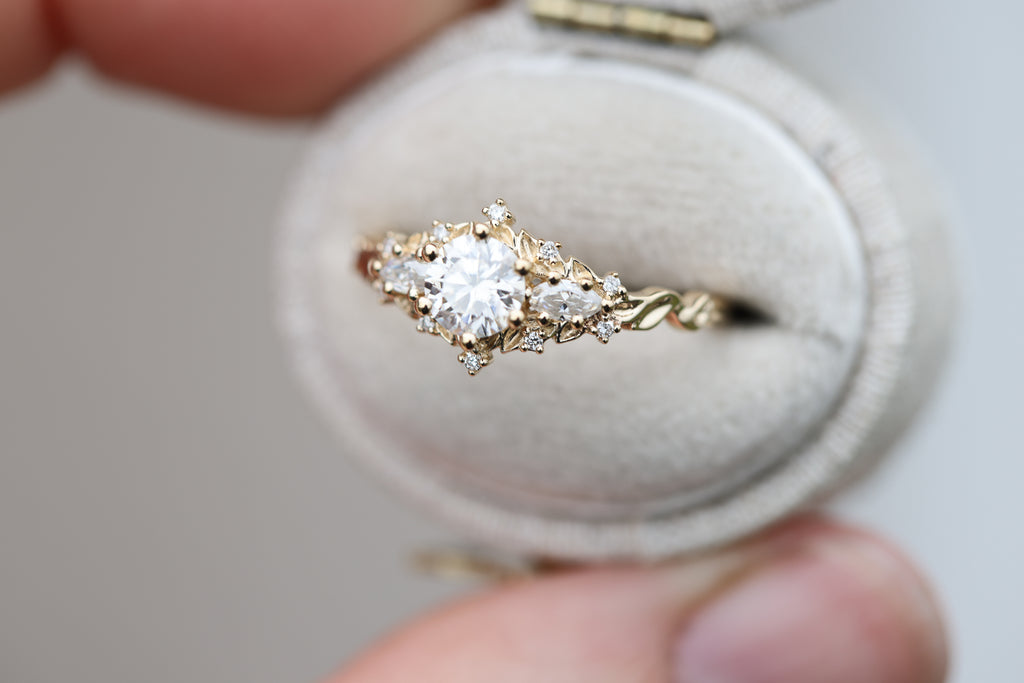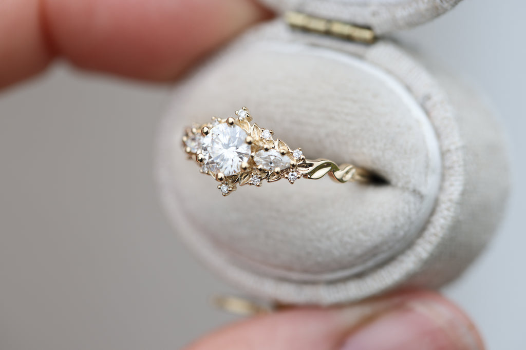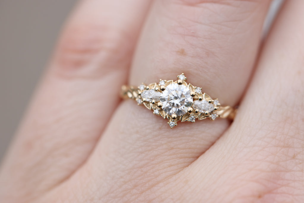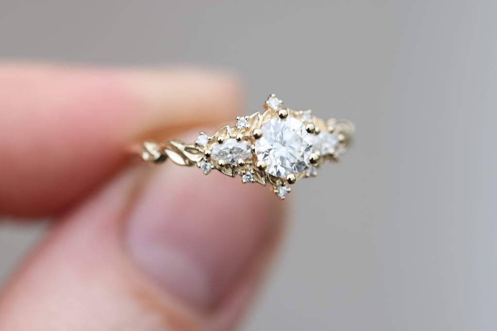 - 1mm lab diamond accent stones placed along the leaves