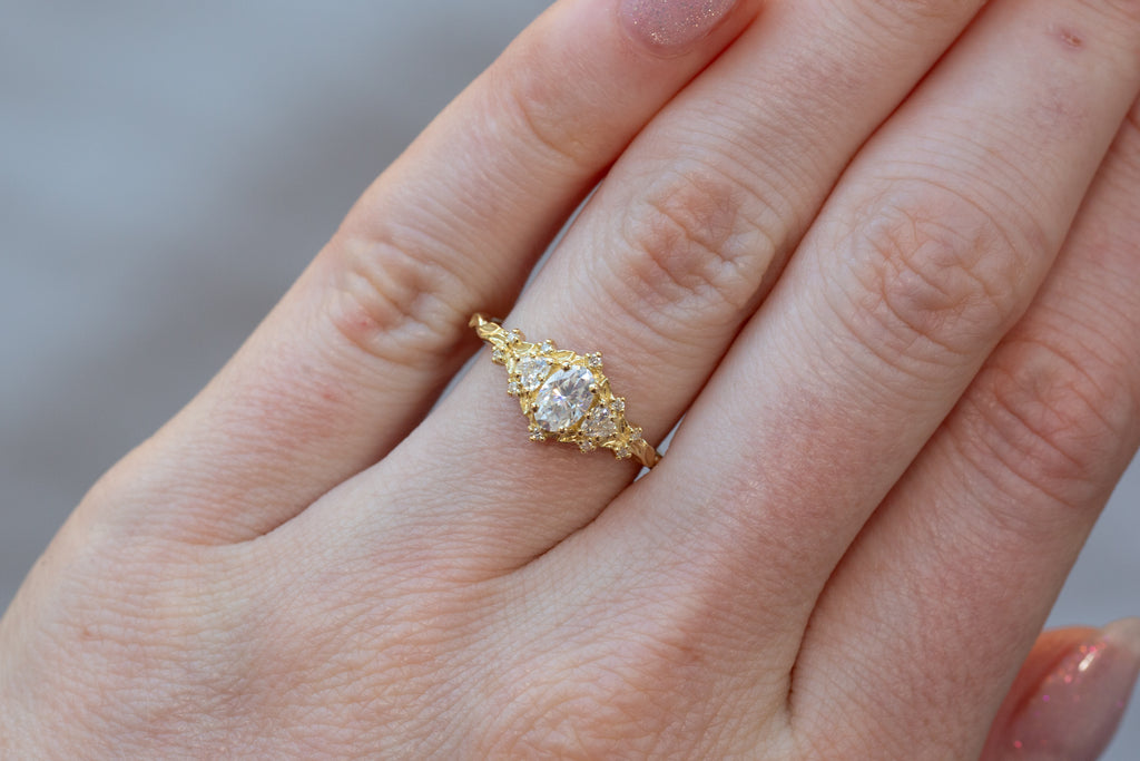 READY TO SHIP - Size 7, 18k Rose Gold Briar Rose Three Stone