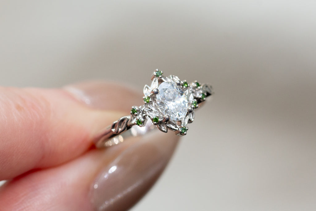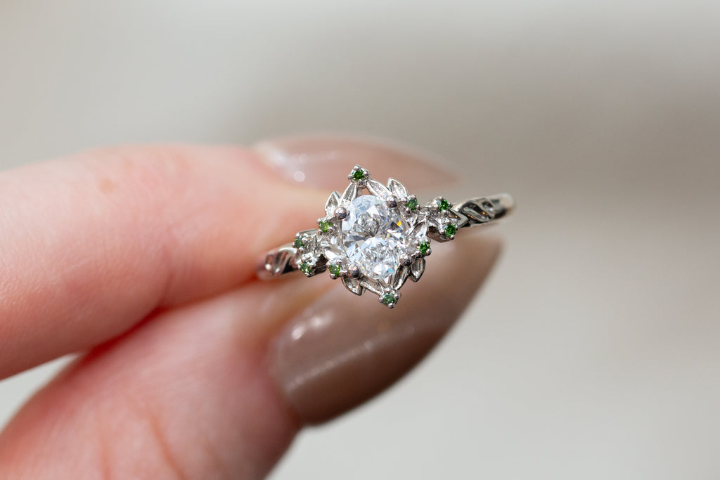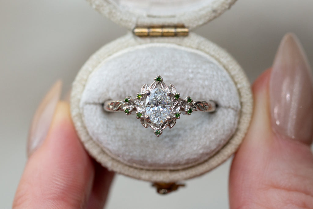 Ready to ship- Size 6.75, 14k white gold Briar Rose Halo
