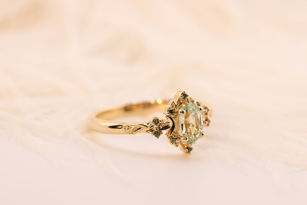 Ready to ship, Size 6.75 14k yellow, Briar halo moon