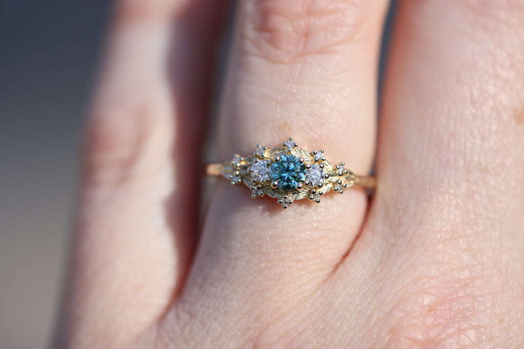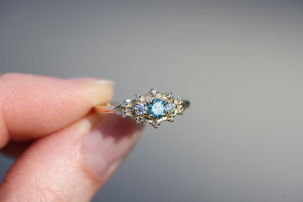 READY TO SHIP- size 6.75, 14k yellow gold Woodland Three Stone