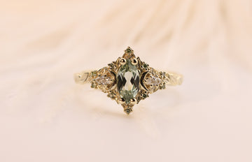 Ready to ship, Size 7 14k green gold, Briar moon three stone