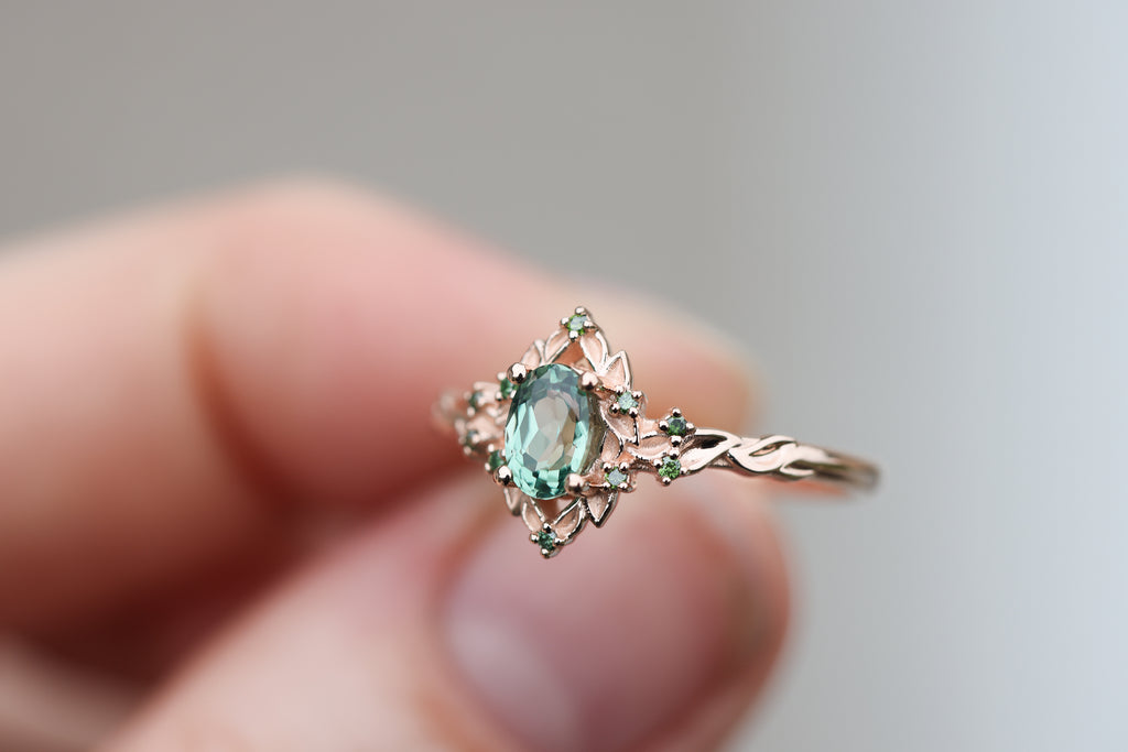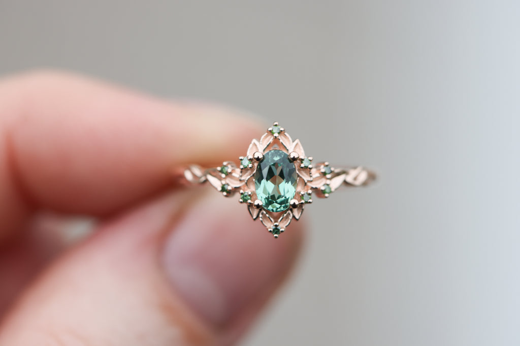- 6x4mm oval lab green sapphire center