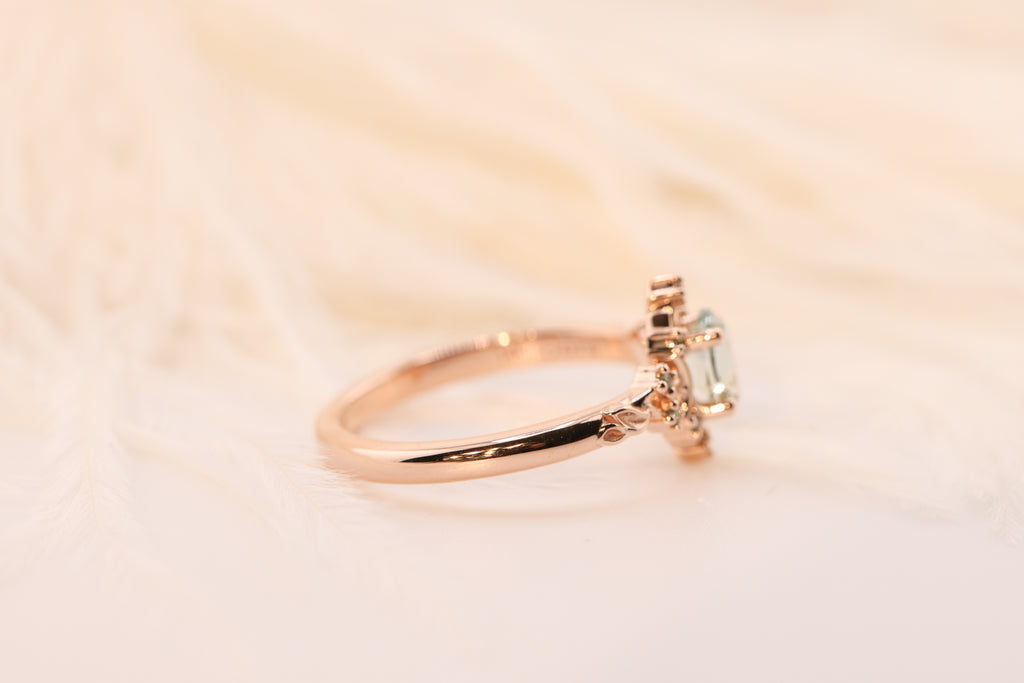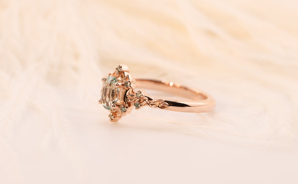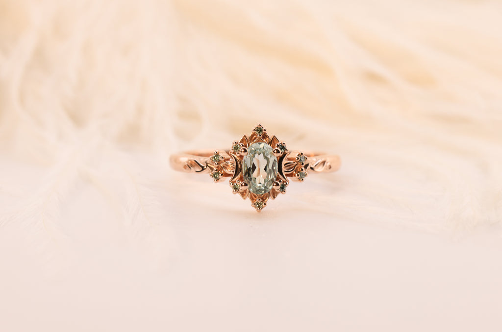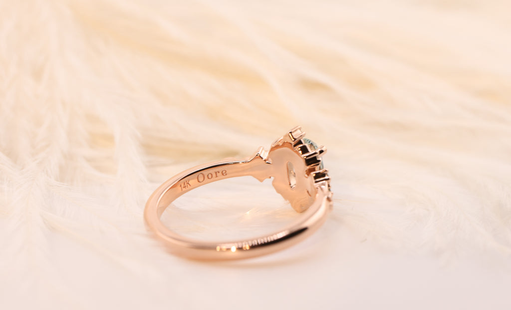 Ready to ship, Size 7 14k rose, Briar halo moon