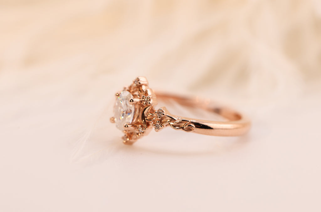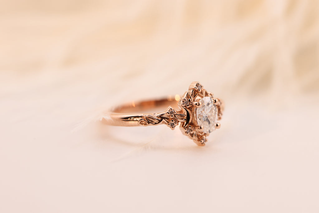 Ready to ship, Size 7 14k rose, Briar halo moon setting