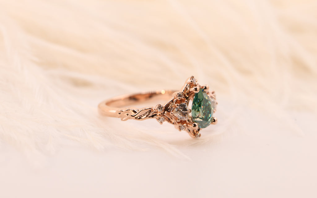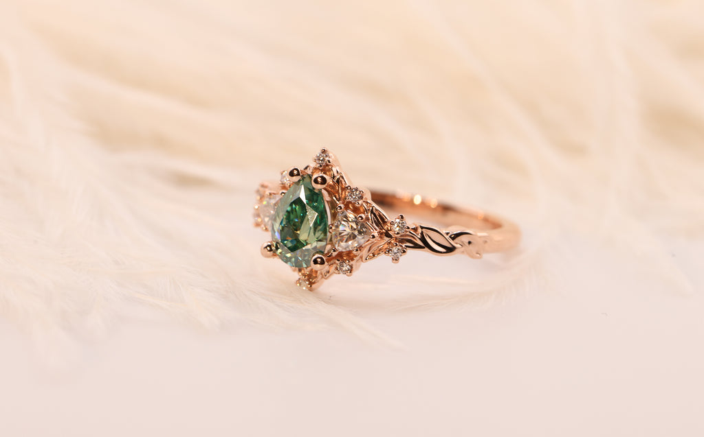 Center: 7x5mm pear teal moissanite