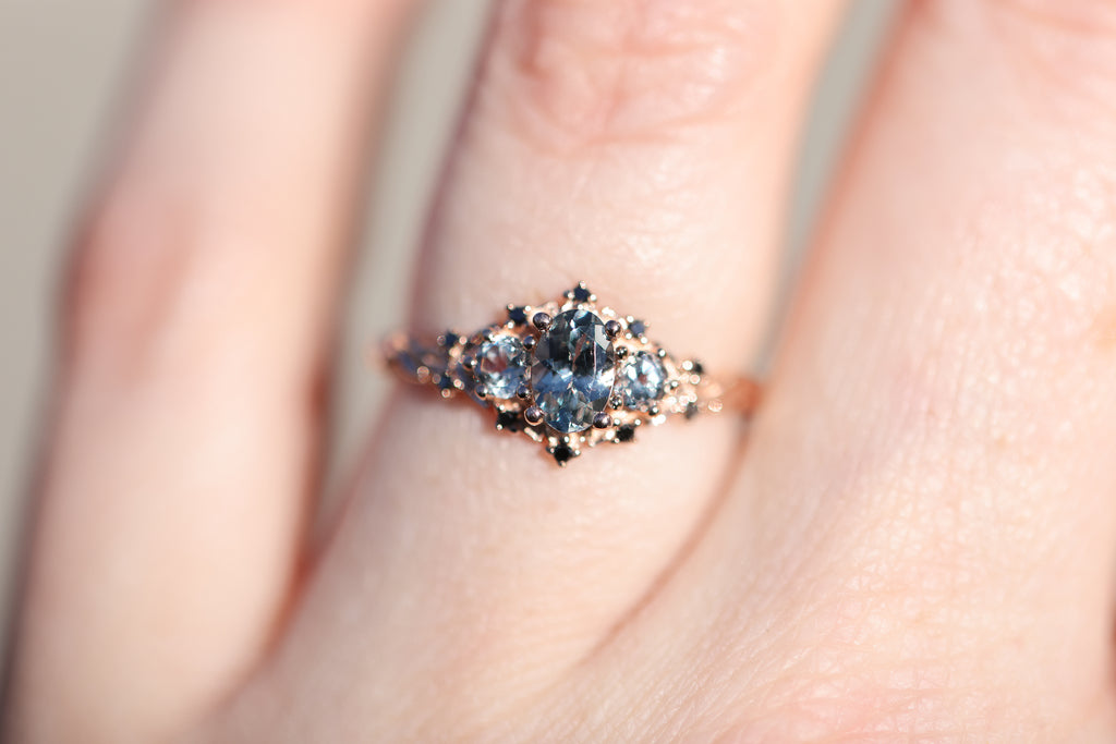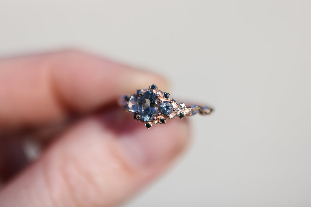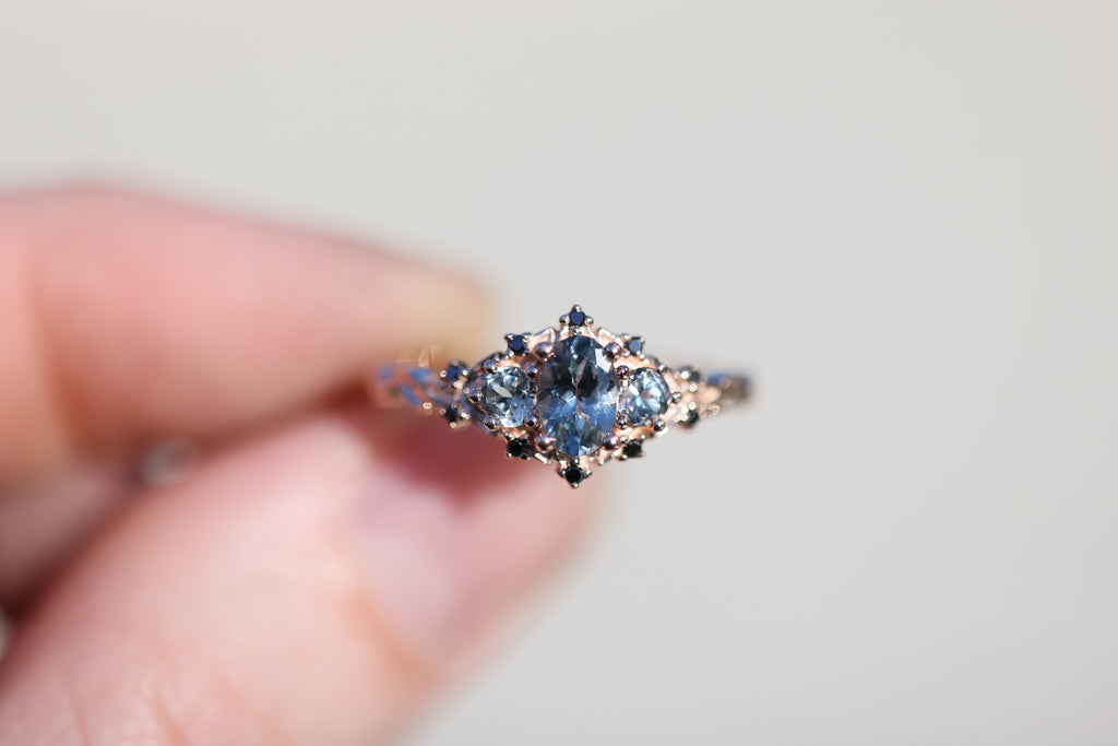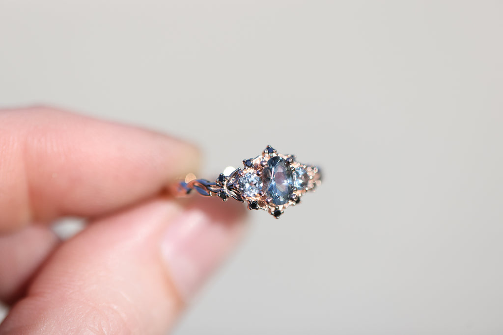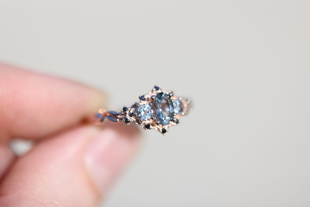 READY TO SHIP - Size 7, 14k Rose Gold Briar Rose Three Stone