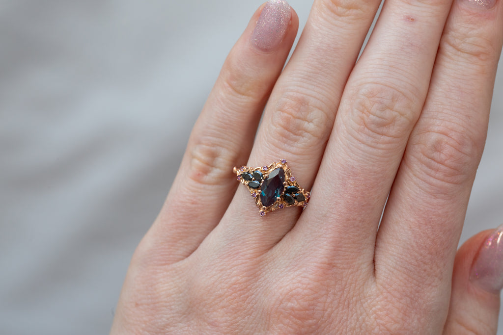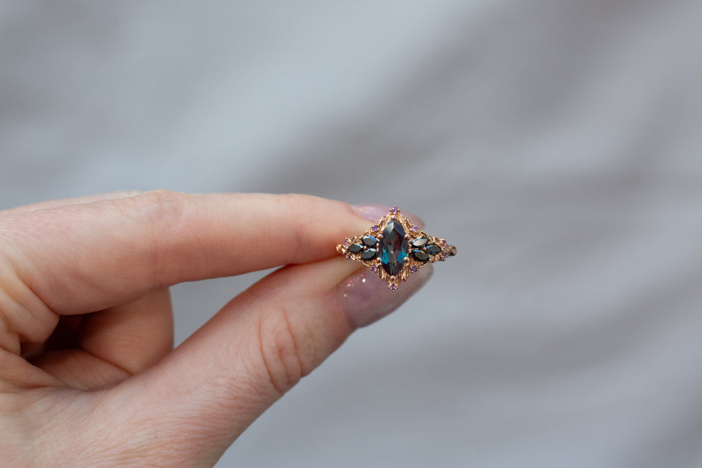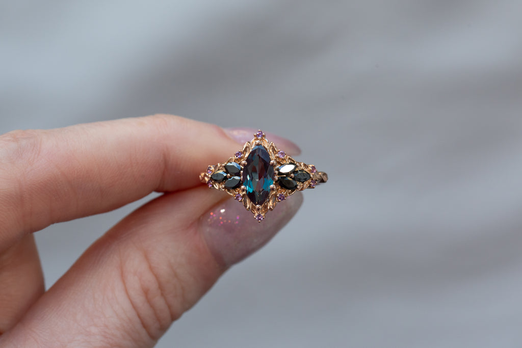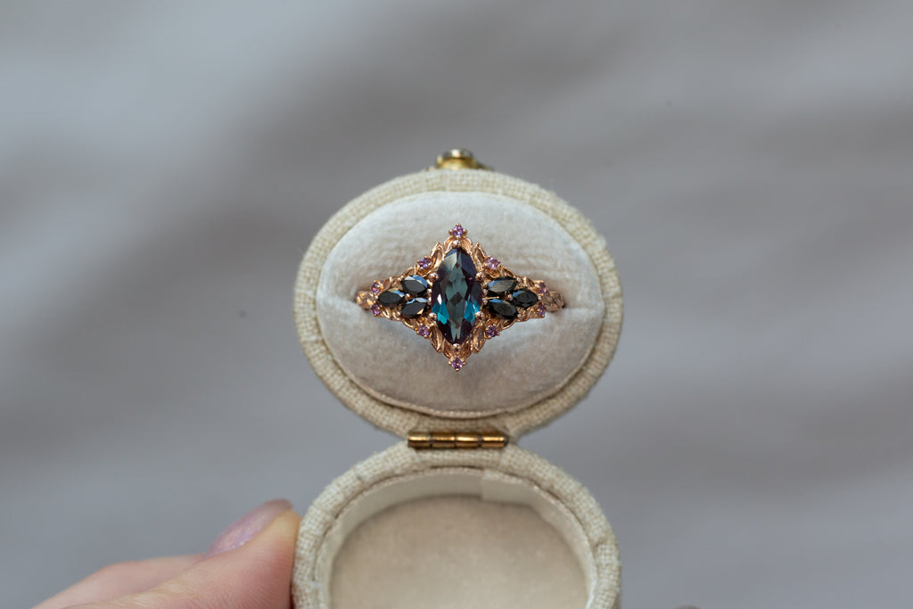 READY TO SHIP - Size 7.75, 18k Rose Gold Briar Rose Starlight