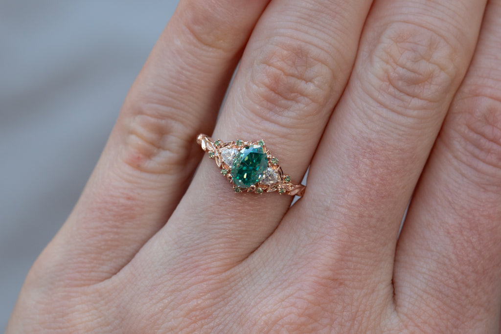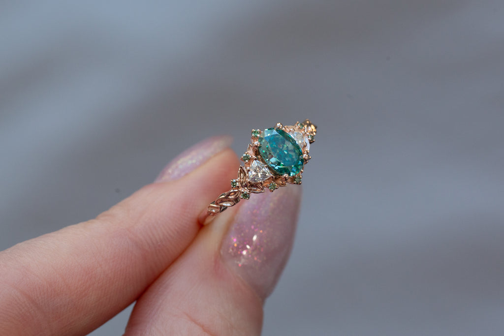 READY TO SHIP - Size 7, 14k Rose Gold Briar Rose Three Stone