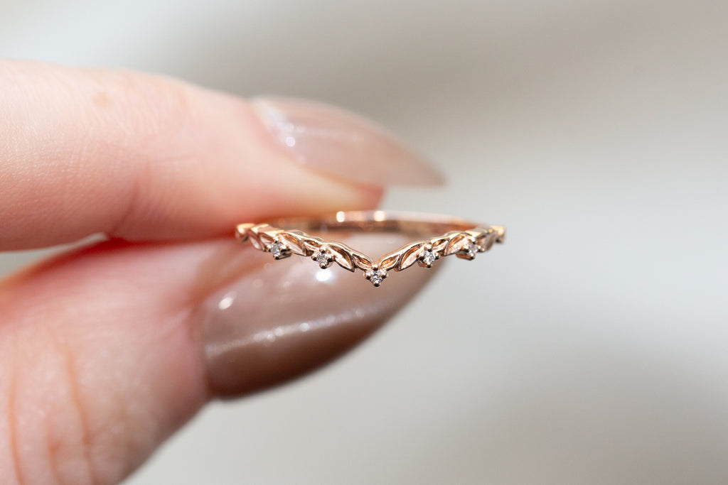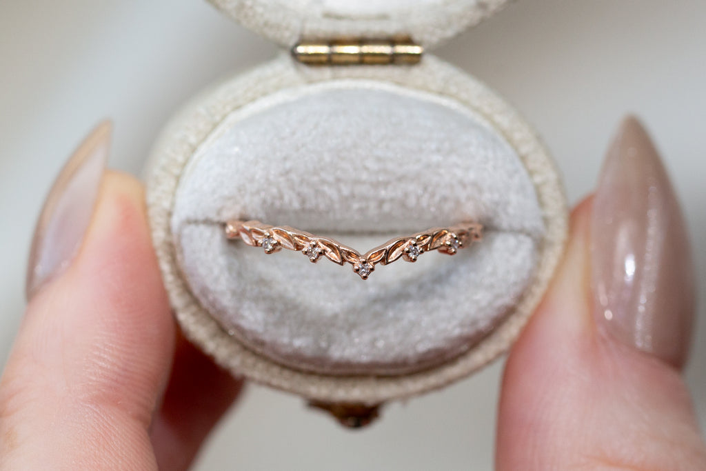 Ready to ship- Size 7, 14k rose gold Curved Leaf Wedding Band