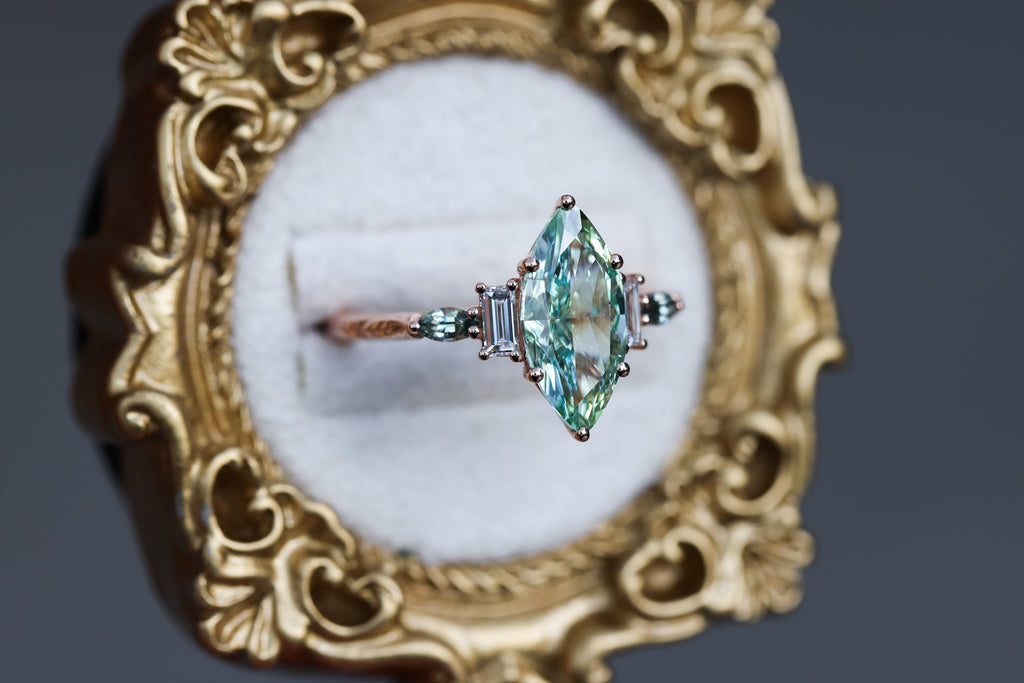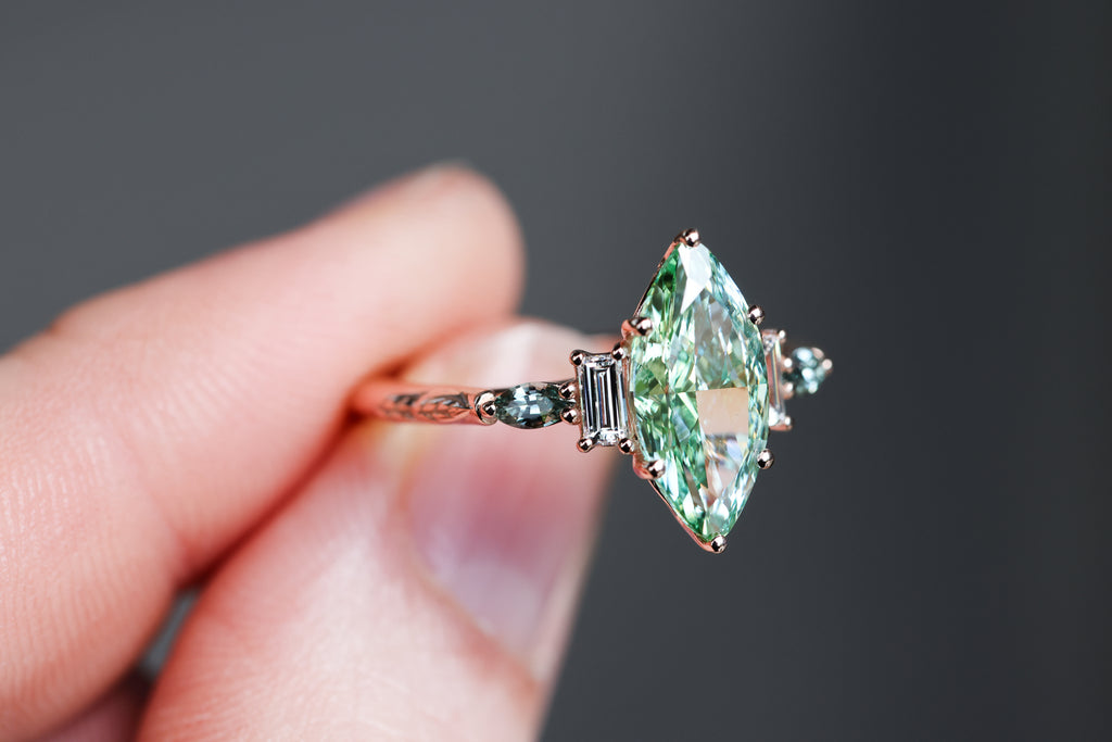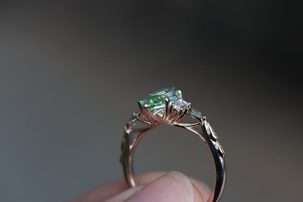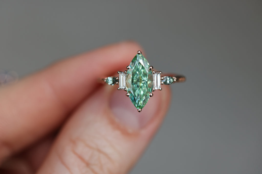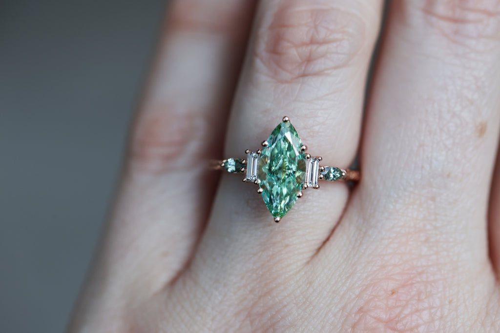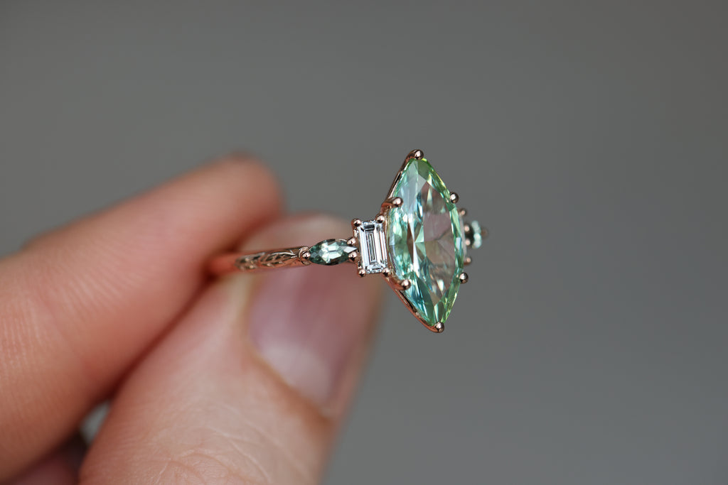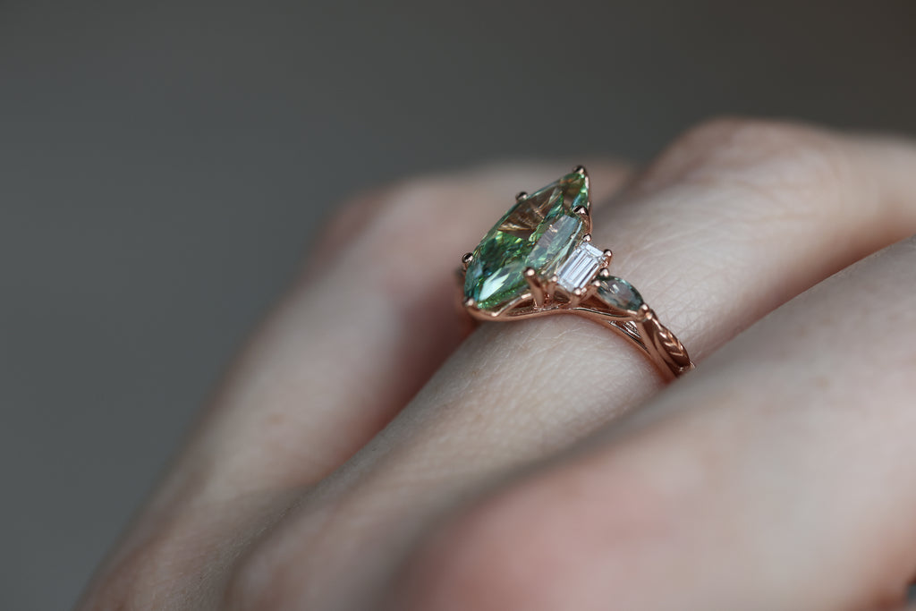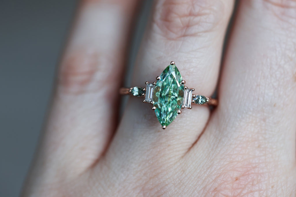 Ready to ship, Size 7 14k rose, Lattice five stone