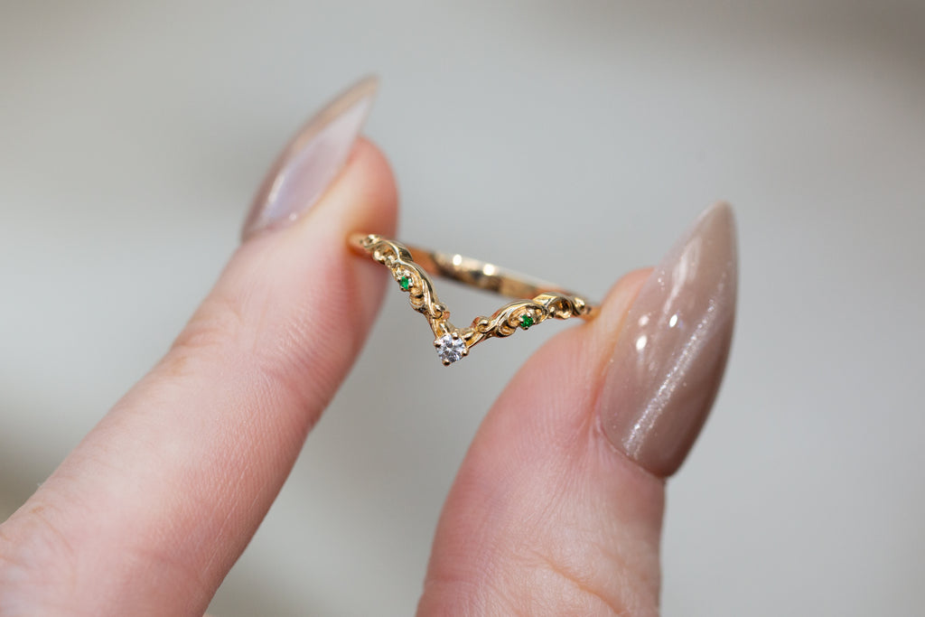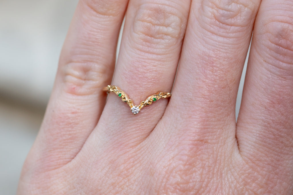 Ready to ship- Size 7, 14k yellow gold Curved Filigree Wedding Band