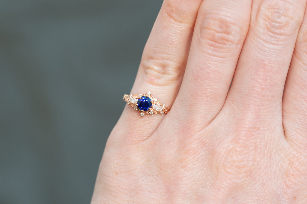 -Center: approx. 5mm round lab blue sapphire