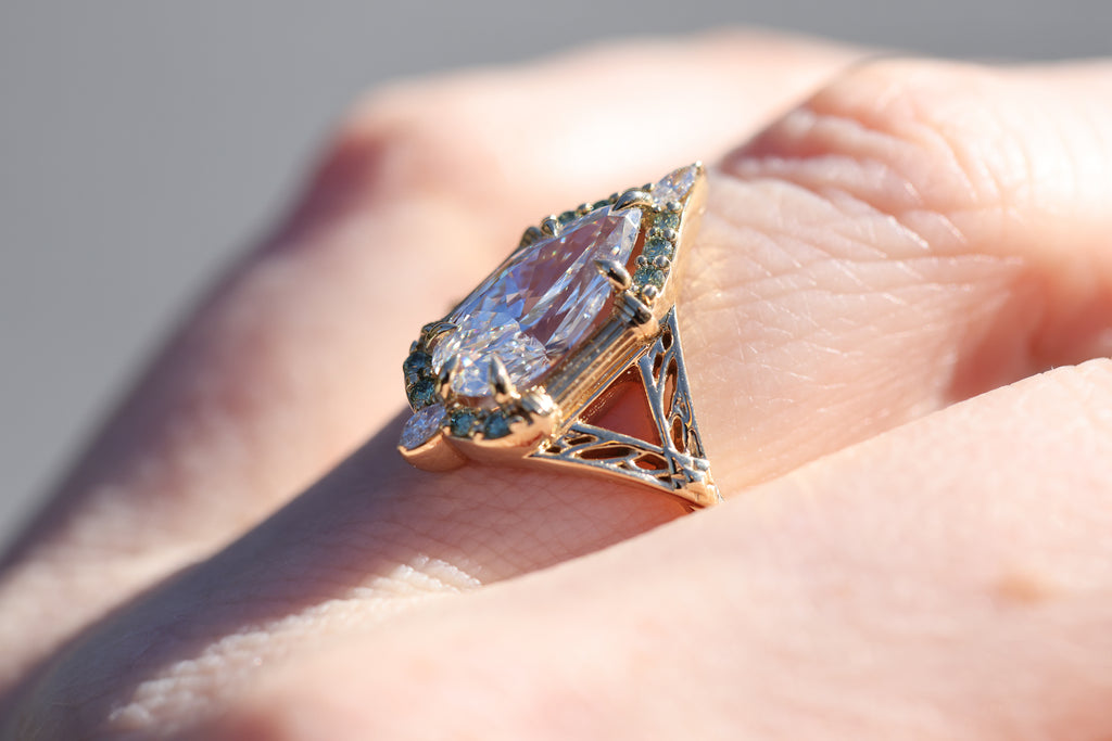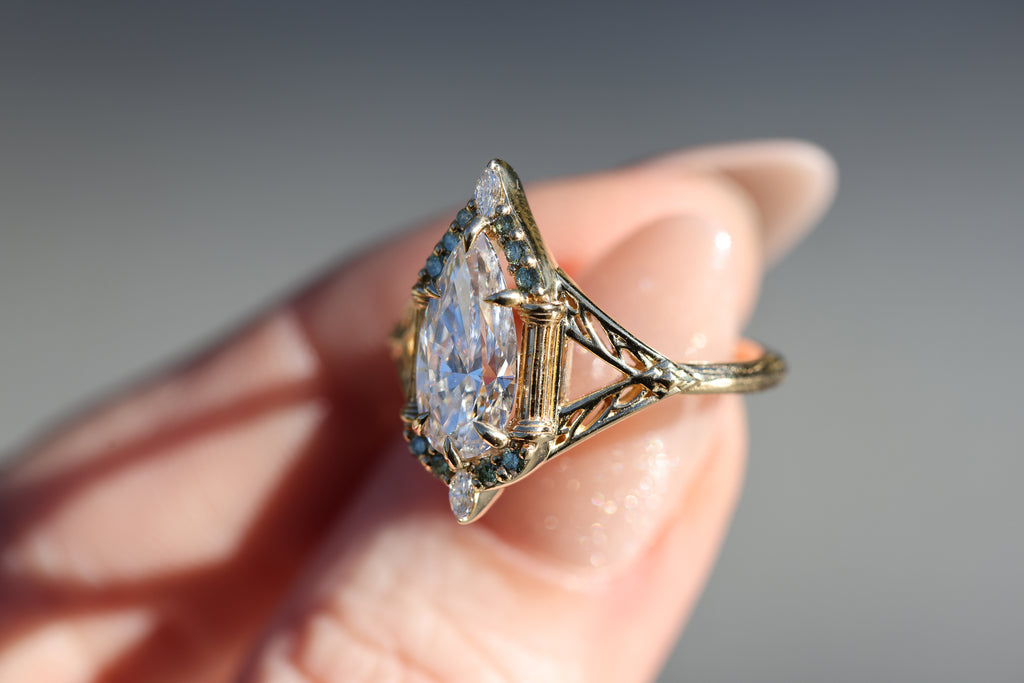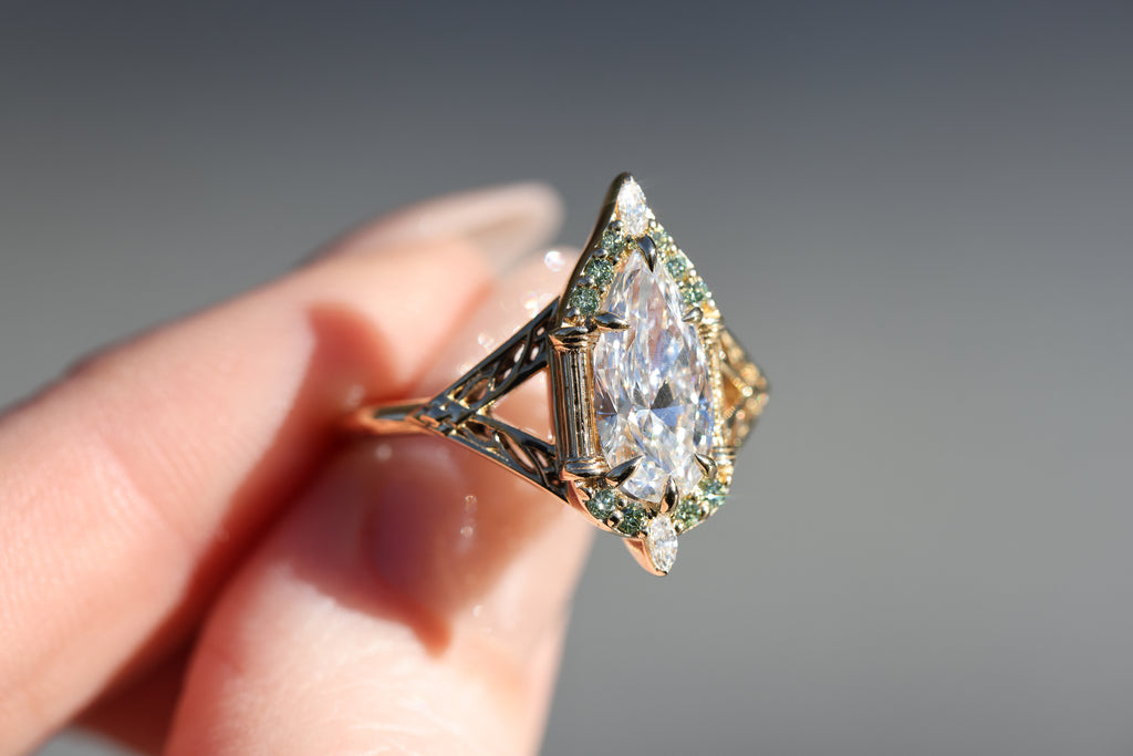 Sides/accents: 3x1.5mm marquise lab diamond, mint round diamond accents