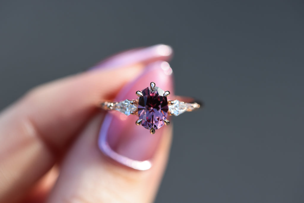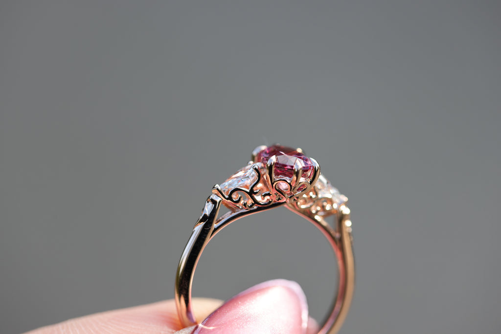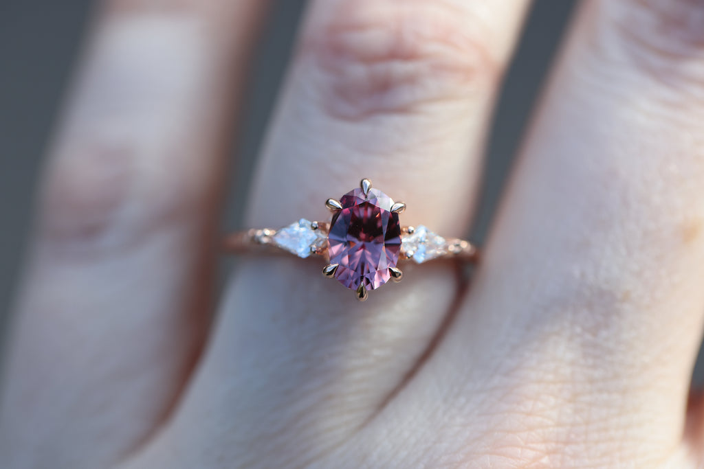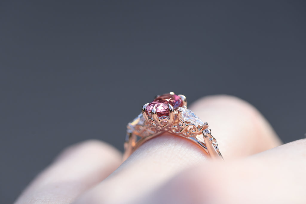 Center: 1.65ct Rhodolite garnet from Truthseeker gems