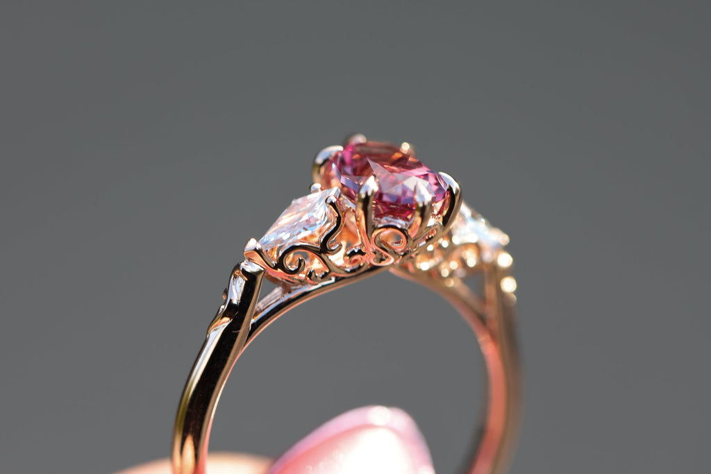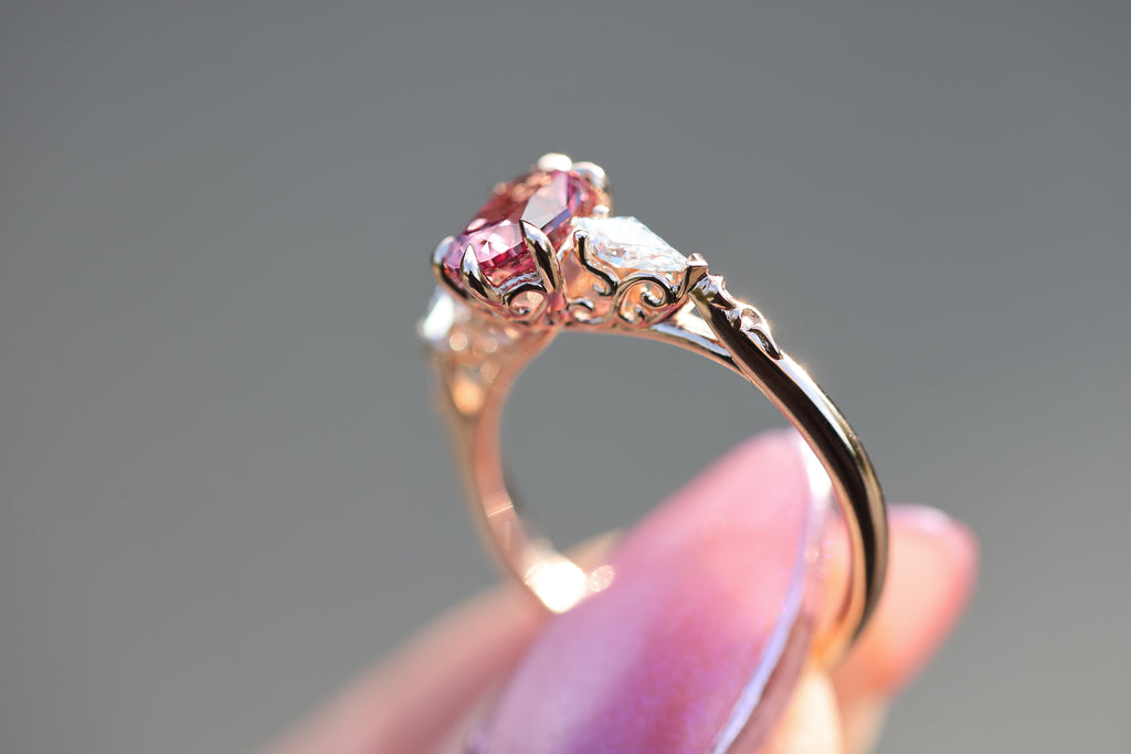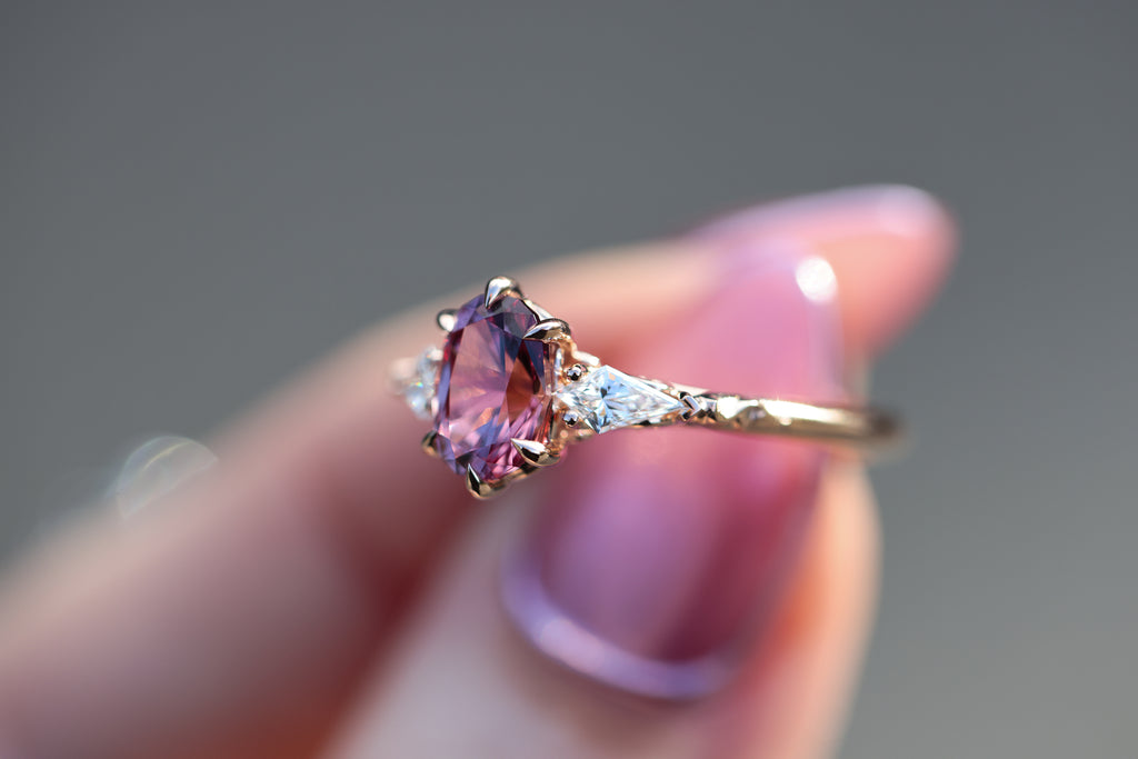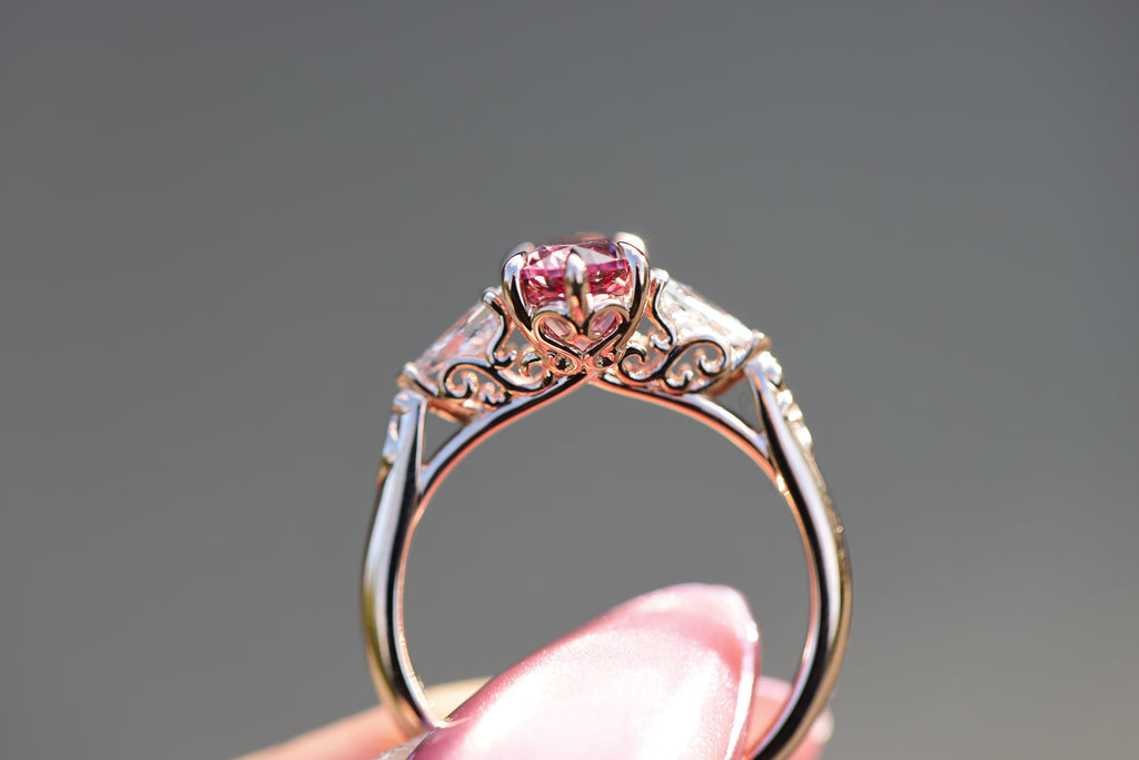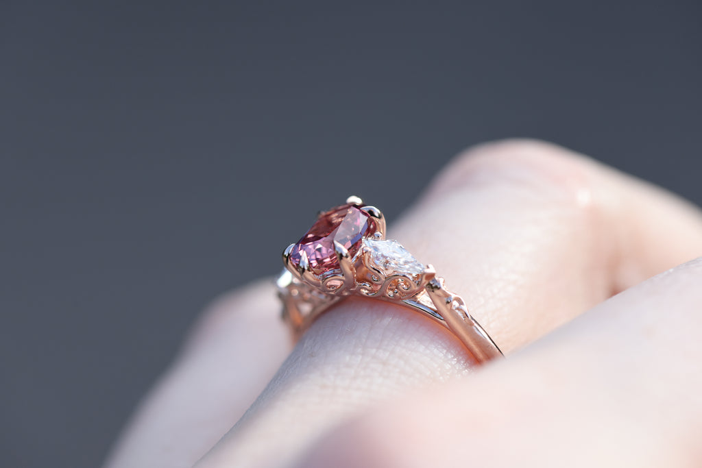 Center: 1.65ct Rhodolite garnet from Truthseeker gems