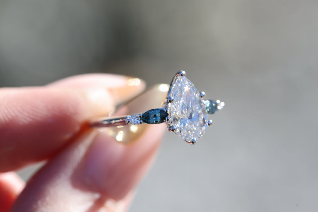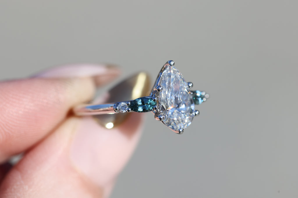 4x2mm marquise natural teal sapphire side stones