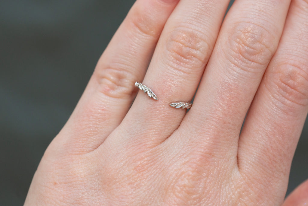 READY TO SHIP - Size 6, 14k white gold Open Leaf Wedding Band