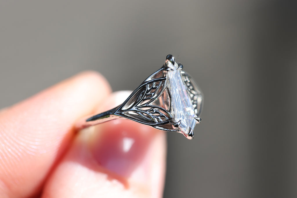 Ready to ship, Size 8 platinum, Elvindell with natural sheild cut diamond