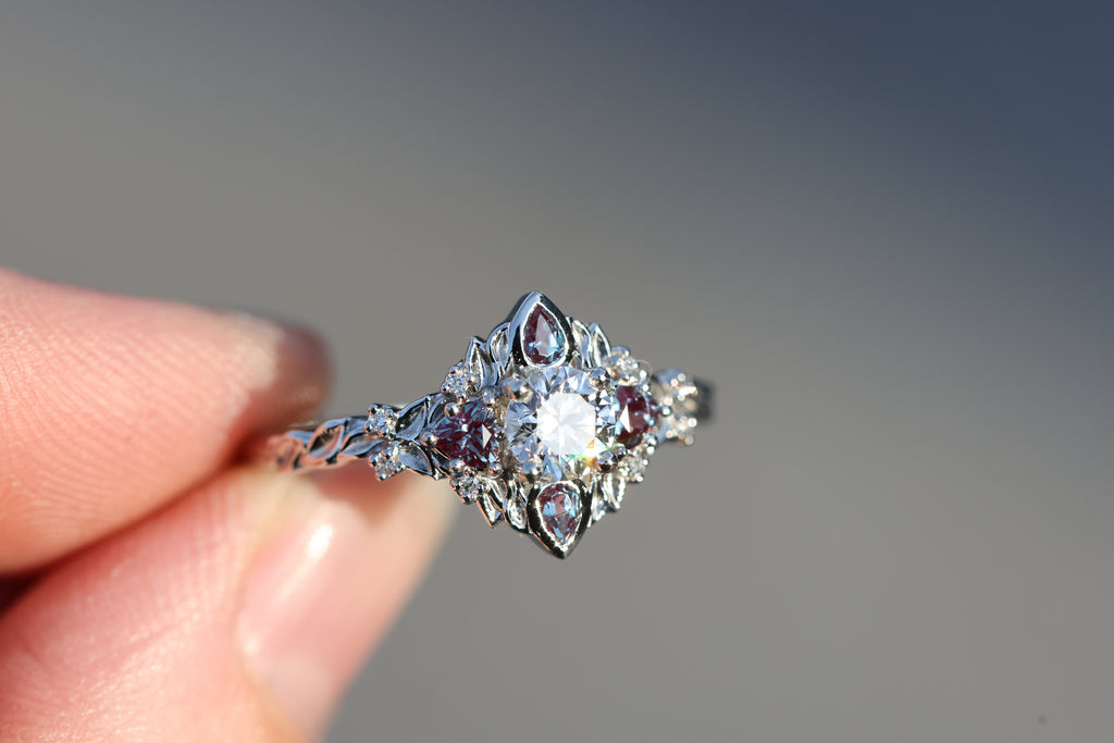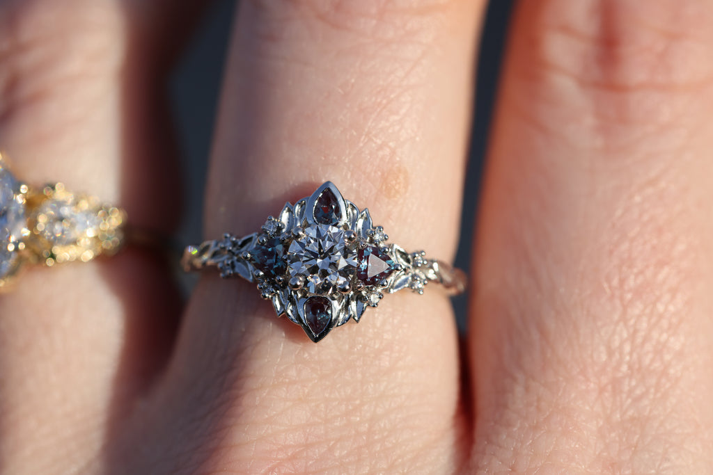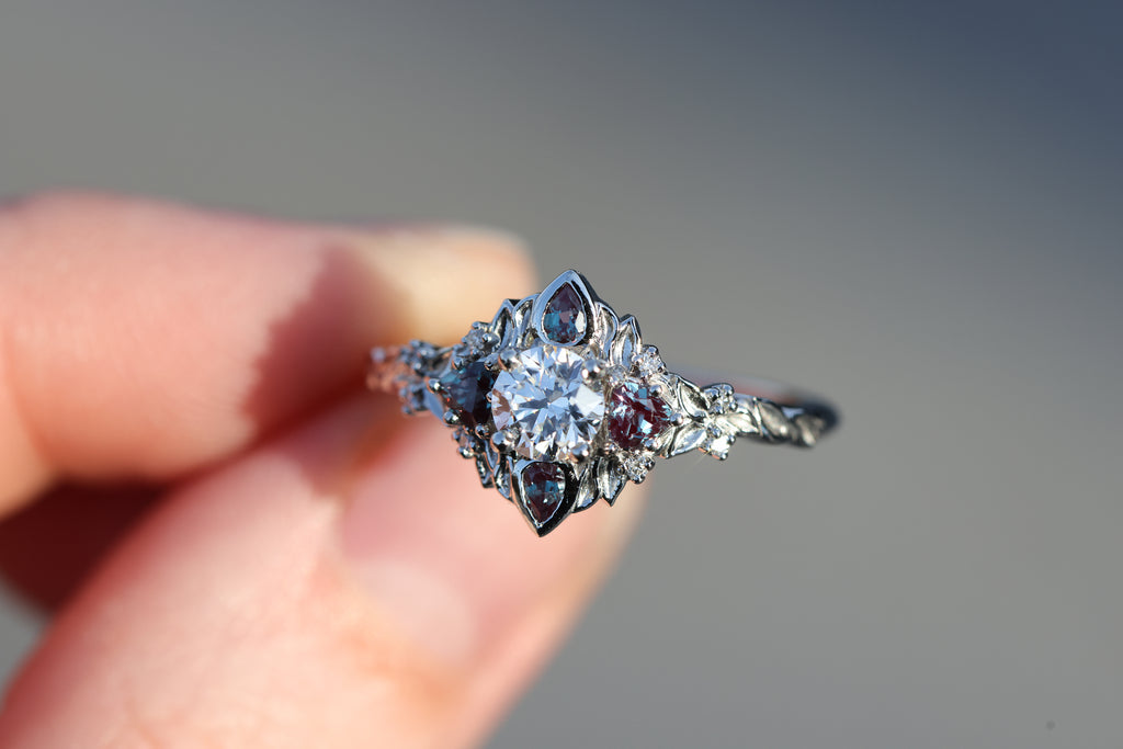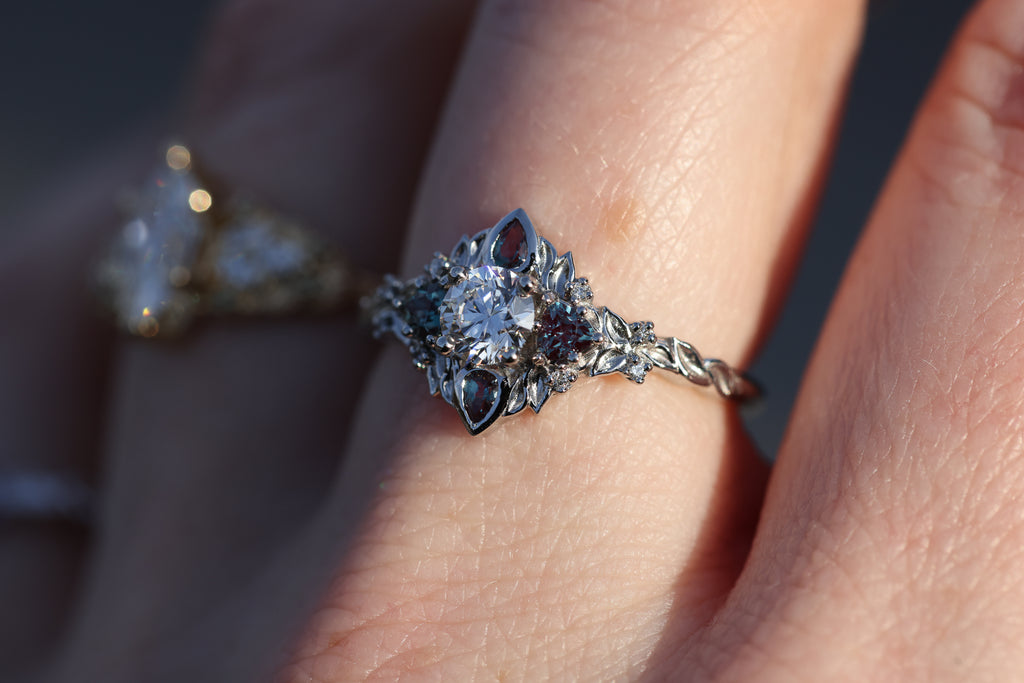 -Sides/Accents: 3mm trillion lab alexandrite, 3x2mm pear alexandrite lab, 1mm labdiamond