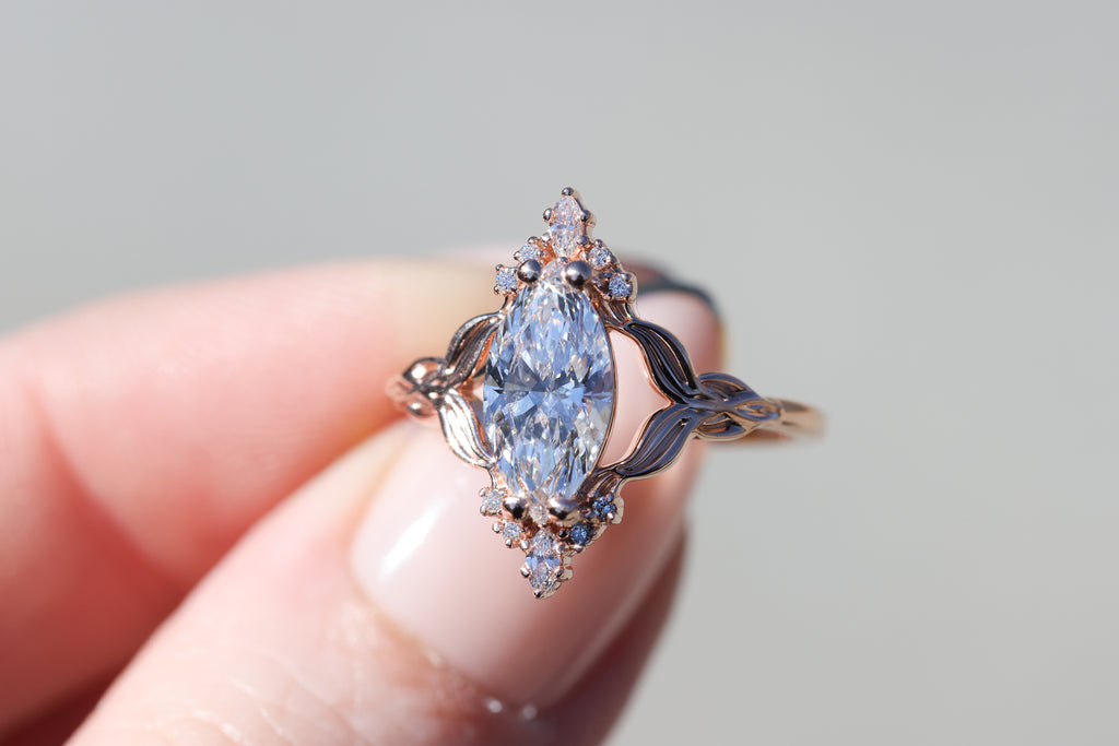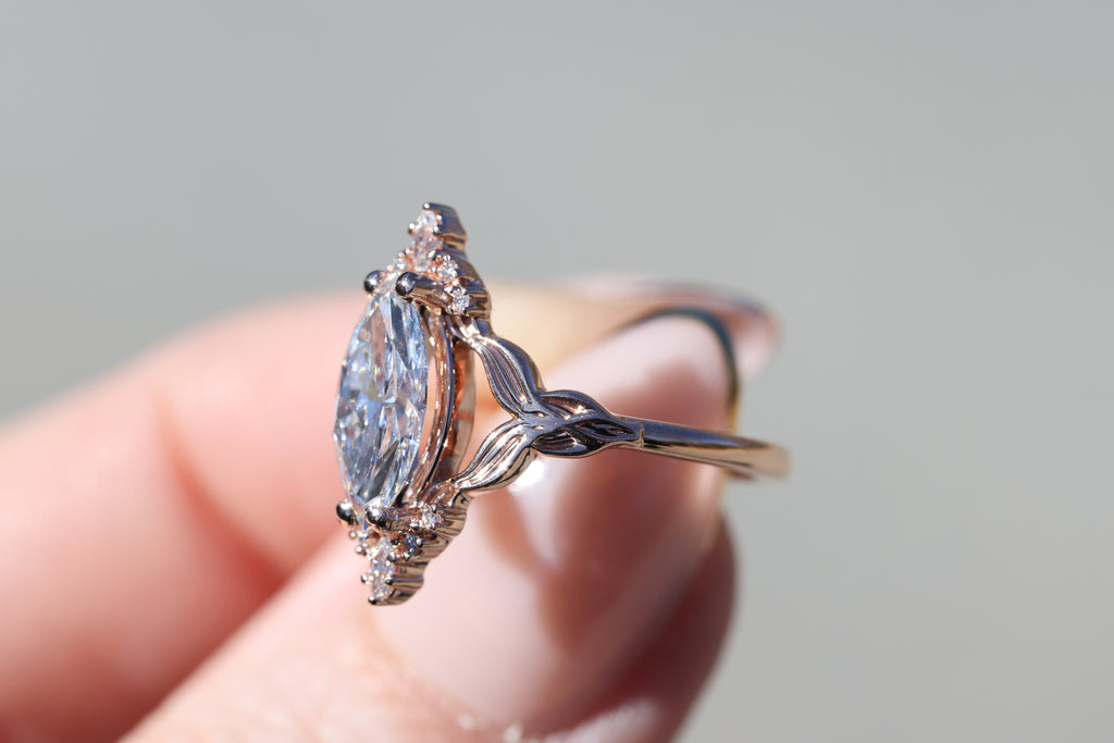 Siren setting with 1.3ct marquise lab diamond