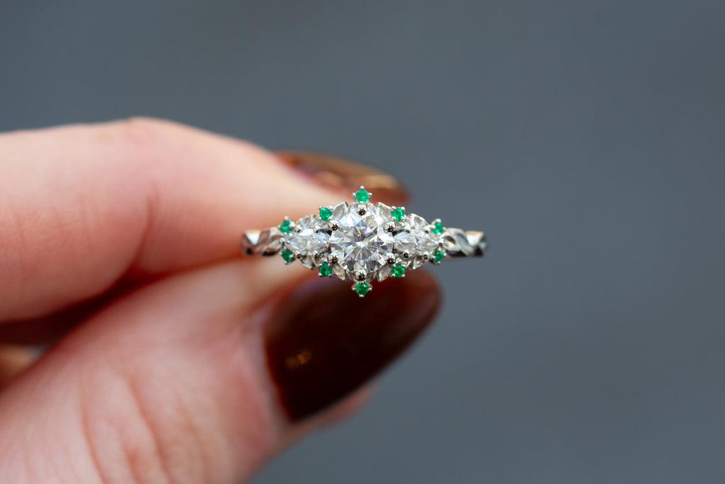 READY TO SHIP - Size 6.75, 14k White Gold Briar Rose Five Stone