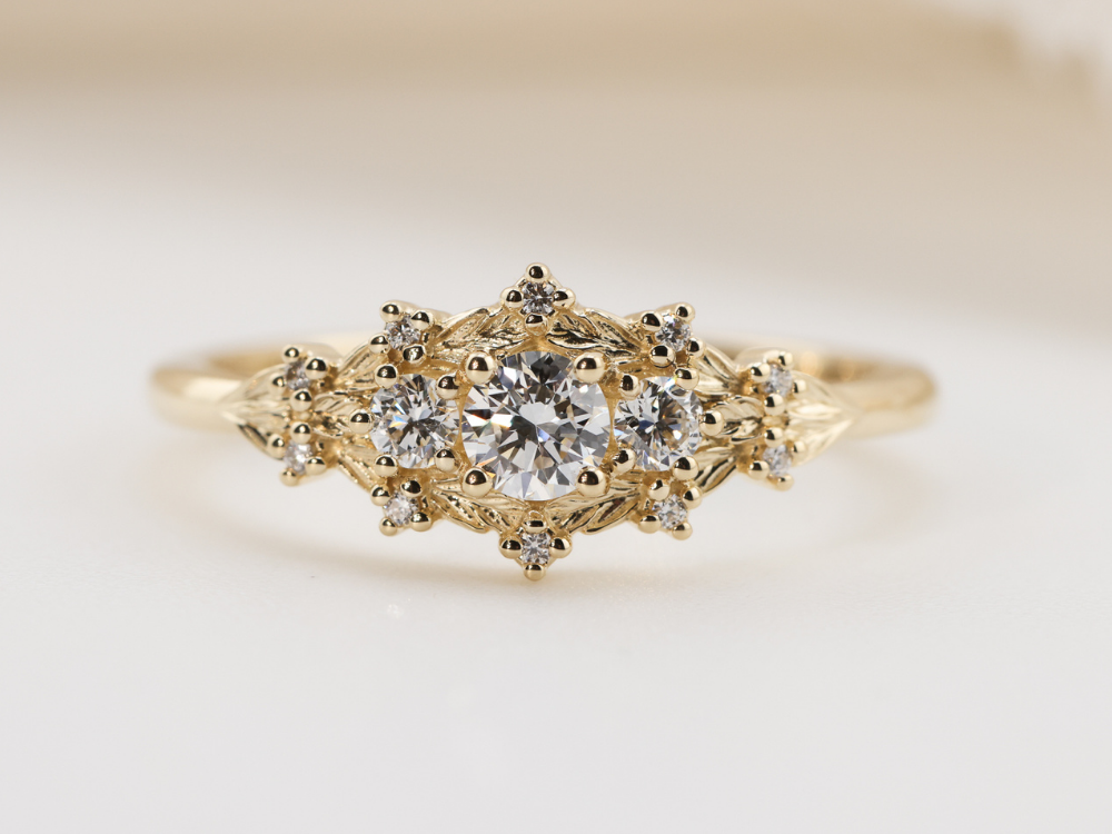 Customize your own Woodland Three Stone with 4mm round center stone