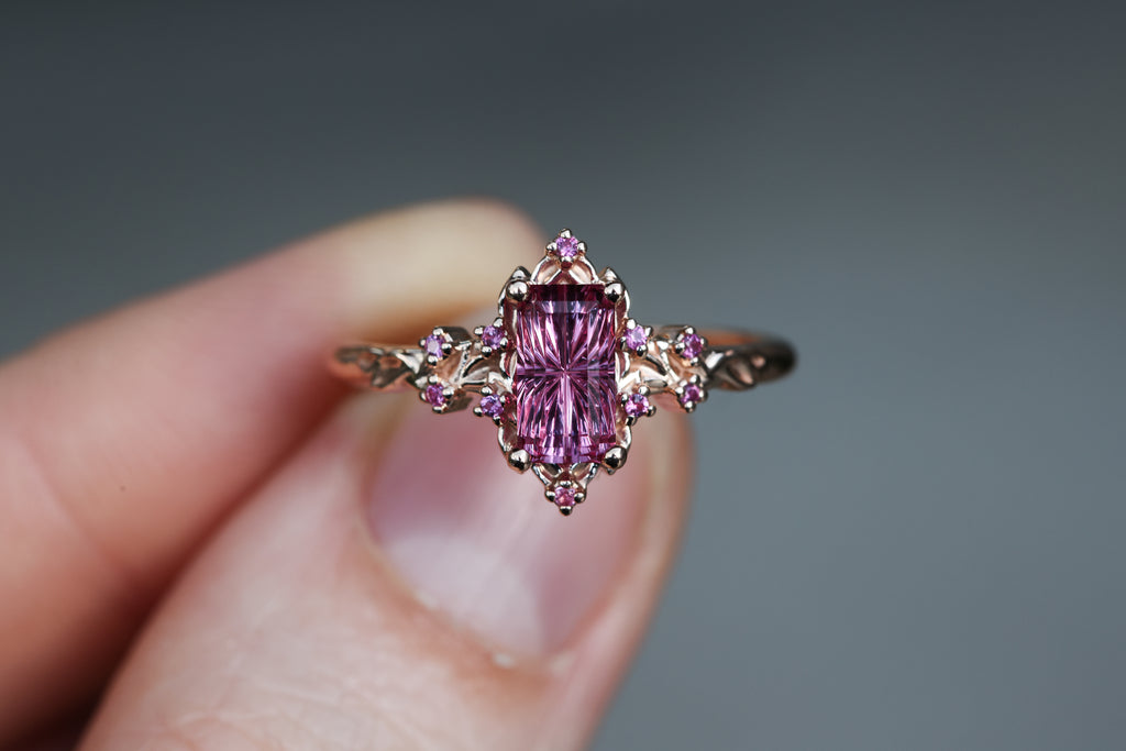Ready to ship, Size 7 14k rose, Briar halo with starbrite sapphire
