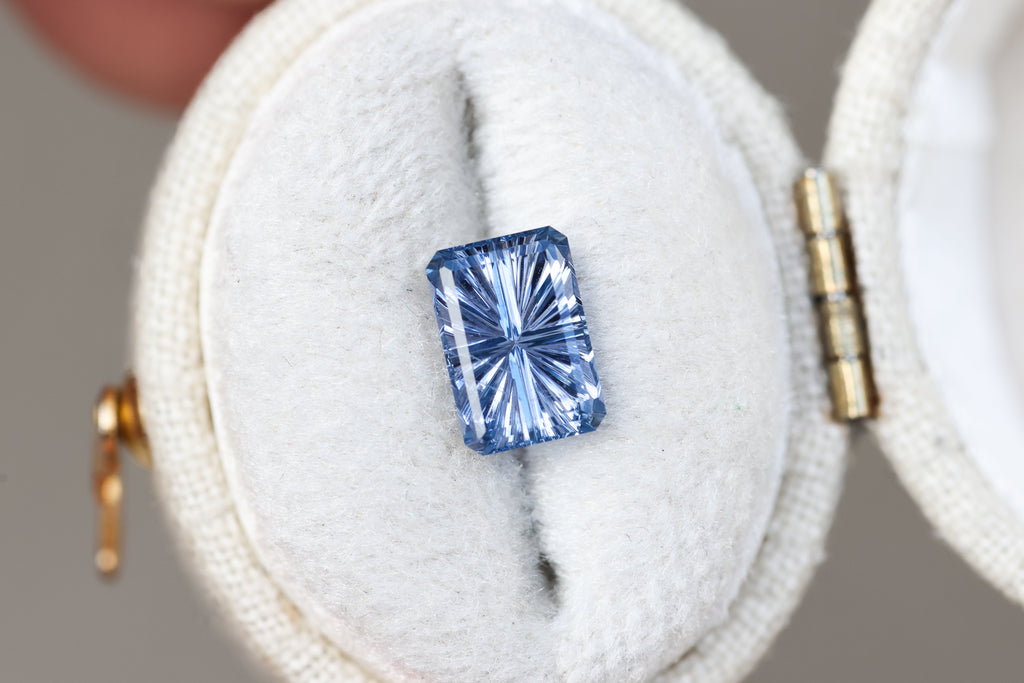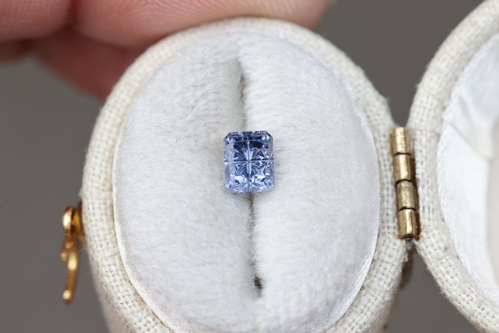 1.51ct rectangle purple blue sapphire, Starbrite cut by John Dyer