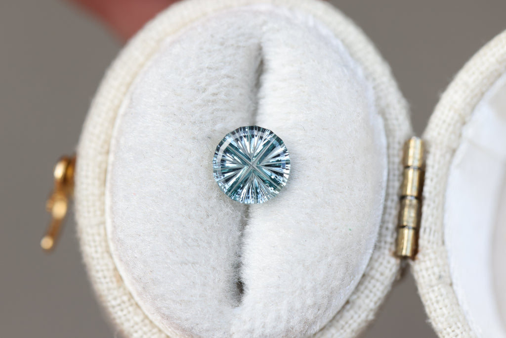 1.19ct round grey blue sapphire, Starbrite cut by John Dyer