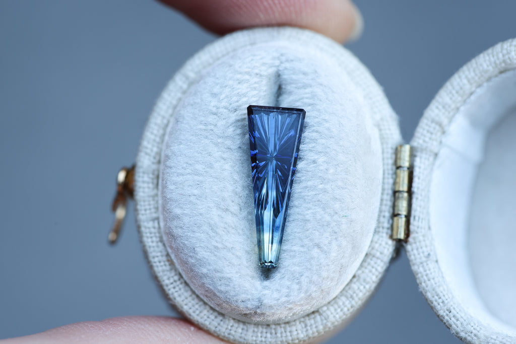 2.14ct tapered parti sapphire, Starbrite cut by John Dyer